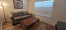Long term rental. Furnished 2 bed, 2 bath home with an office/den. Laminate flooring throughout. Laundry area includes washer and dryer. Open and covered patio in back of home. Large walk-in closet in primary bedroom.
