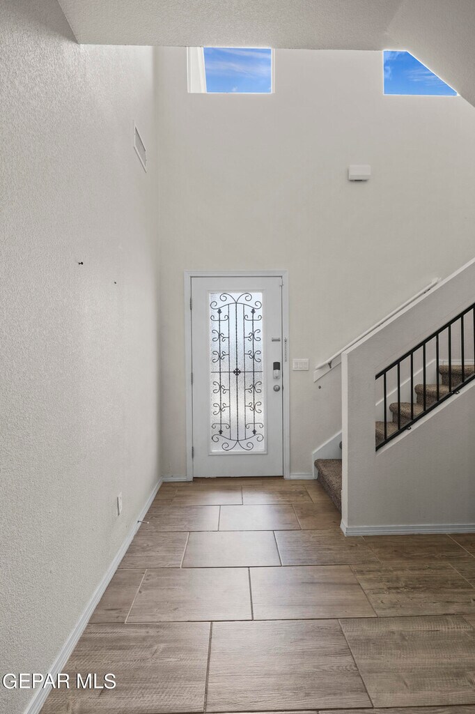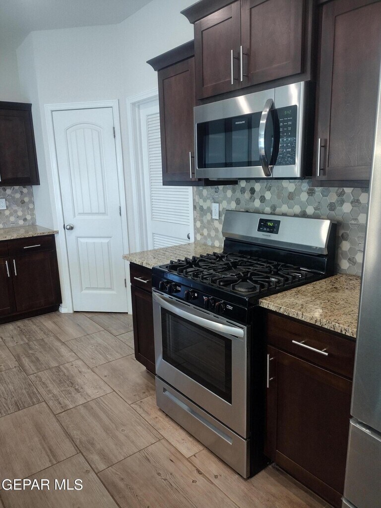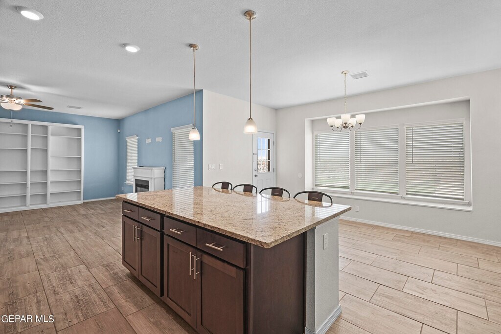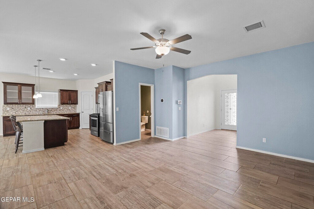 New Summer Sky Neighborhood built in 2022! Move In Ready Now! Your family & Pets will enjoy this 2 story,4 beds,2.5 baths. Impressive entrance to formal large living room w/built in shelves. High ceilings & bright windows all around. Kitchen has large granite island w/ bar stools included,deep sink,dishwasher,range/oven,microwave & extra large pantry. Breakfast/Dining area. room enough for large dining table. Convenient Restroom downstairs. Upstairs has all 4 bedrooms. The hall bathroom has double sink vanity & privacy door to toilet. Master Bedroom has a grand balcony outside to view the beautiful southwest sunset. Master Bath has double sink vanity,shower and garden tub. Plenty of coat & linen closets. Utility Room w/shelves for your washer and dryer. Double Car Garage,2 Refrigerated Air Units to save energy. Easy care landscape Amazon Blink Cameras w/your account. close distance to Beautiful Summer Sky Park. Access to I-10,Loop 375. You'll enjoy your life here!
