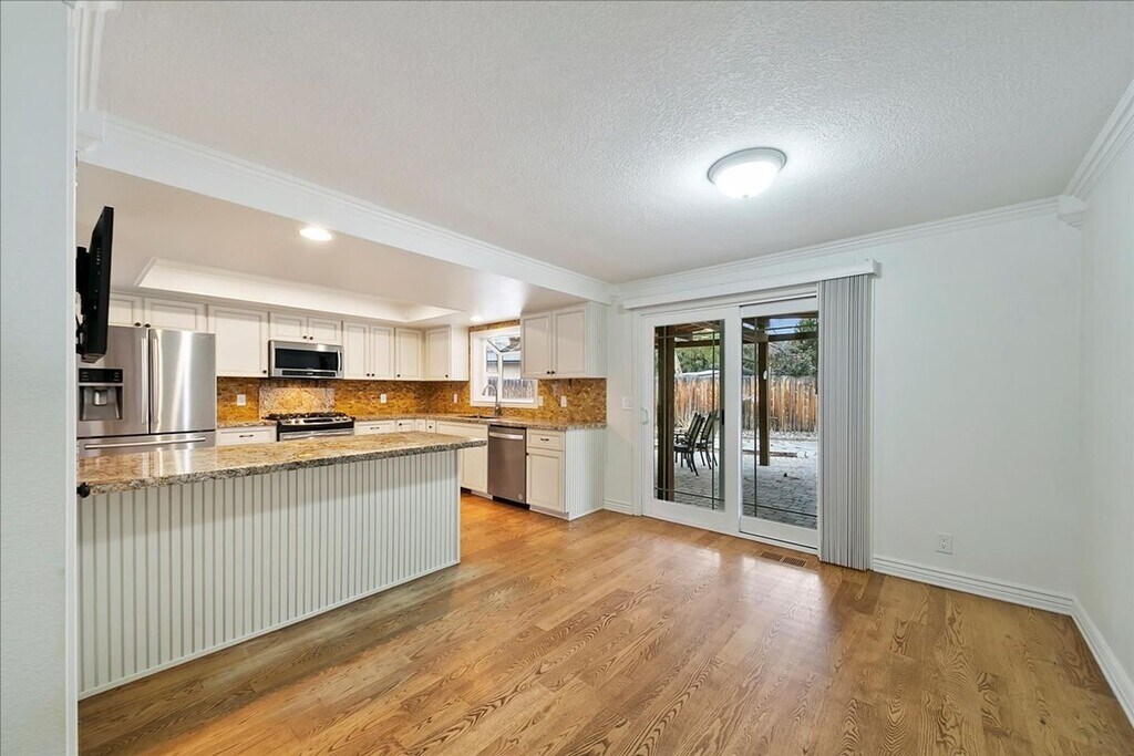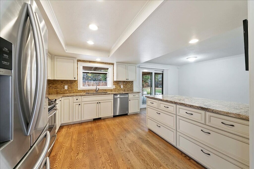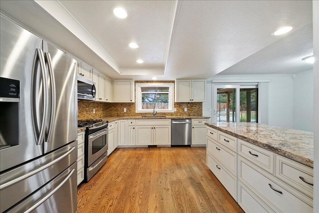 This tri-level beauty is spacious both inside and out! Home comes with a large living room on the main level, and two dining areas. Kitchen has upgraded cabinets, granite countertops and stainless steel appliances. Upstairs has three bedrooms, including the primary suite that has plenty of closet space, dual sinks and a walk-in shower. Downstairs you will find another full bathroom, additional office/bedroom space, and another family room with a fireplace. The backyard comes with a covered patio, greenhouse, storage shed and plenty of space for kids or pets to play in. 6,12 or 18 month lease option.
