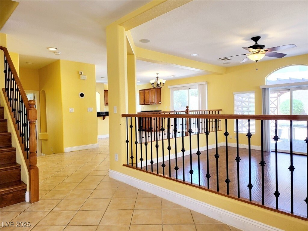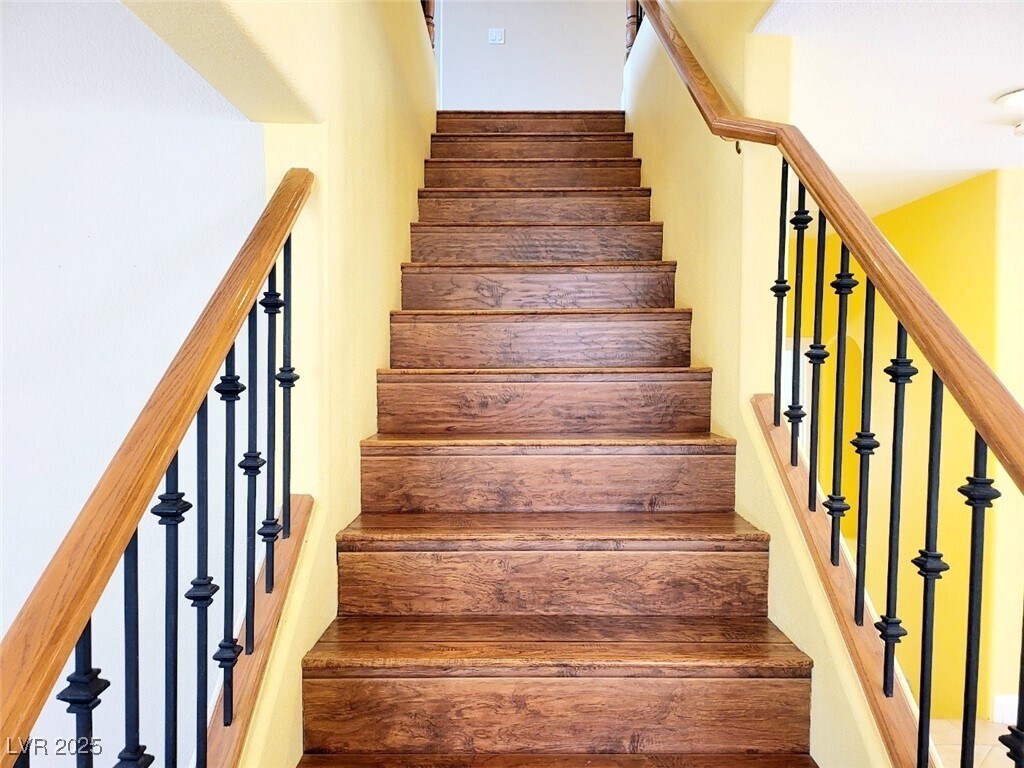 Stunning 3-bedroom, 2-bath home in the guard-gated Royal Highlands community within Southern Highlands. The kitchen boasts granite countertops, an island, pantry, built-in microwave, abundant cabinetry, and a reverse osmosis system. The primary bedroom features French doors and a ceiling fan/light. Recessed lighting illuminates the dining area. Whole-house soft water system and custom wrought-iron stair and interior railings add elegance throughout. Tile and engineered wood flooring—no carpet. Laundry room with transom window. Primary bath with double sinks, separate tub and shower, and two walk-in closets. Backyard with gazebo, perfect for relaxing or entertaining. Includes new refrigerator and stove; water heater under 3 years old. Two energy-efficient HVAC units. Sewer and trash included. Garage with EV charger. Conveniently located near parks, trails, markets, restaurants, a hospital, and schools.