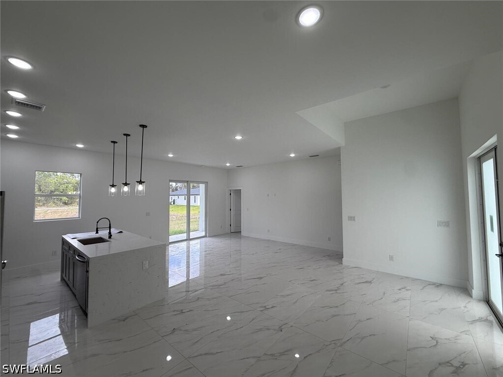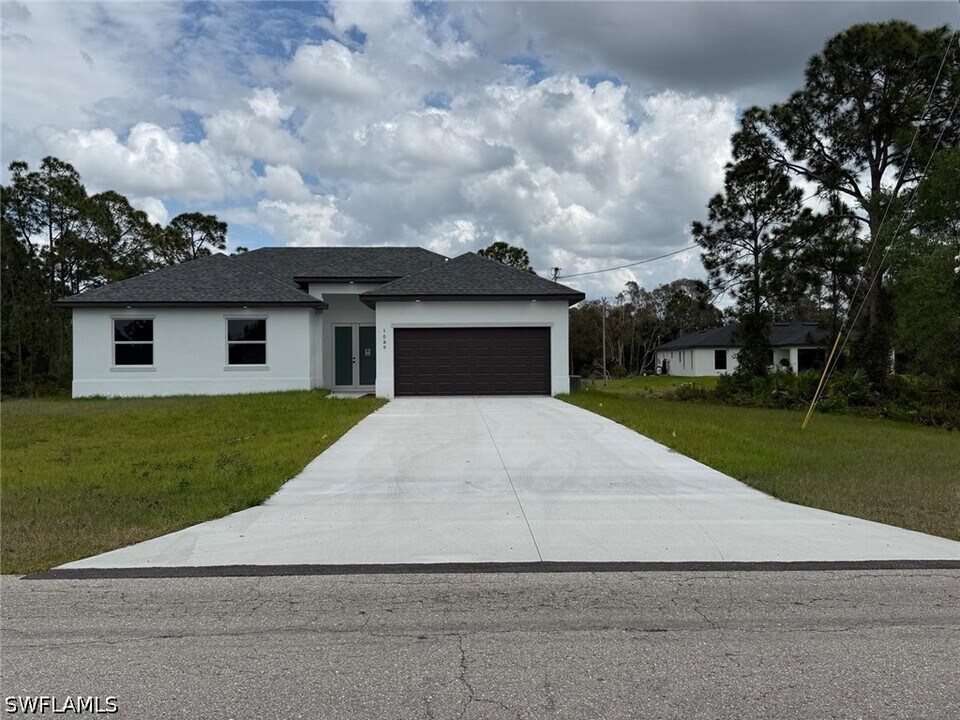 Brand New Construction in Lehigh Acres Beautiful new construction featuring 3 bedrooms + den and 2 full bathrooms,designed with a bright open-concept layout and modern finishes throughout. Enjoy porcelain tile flooring,high ceilings,and a sleek kitchen with quartz countertops,large island,stainless steel appliances,and custom cabinetry. The flexible den is perfect for a home office,guest room,or additional living space. Additional highlights include impact windows and doors,2-car garage,and a dedicated laundry room. The primary bathroom offers a double vanity with contemporary design. Located on a spacious lot in a growing area of Lehigh Acres,this home is ideal for both end-users and investors,offering strong rental potential and long-term value.