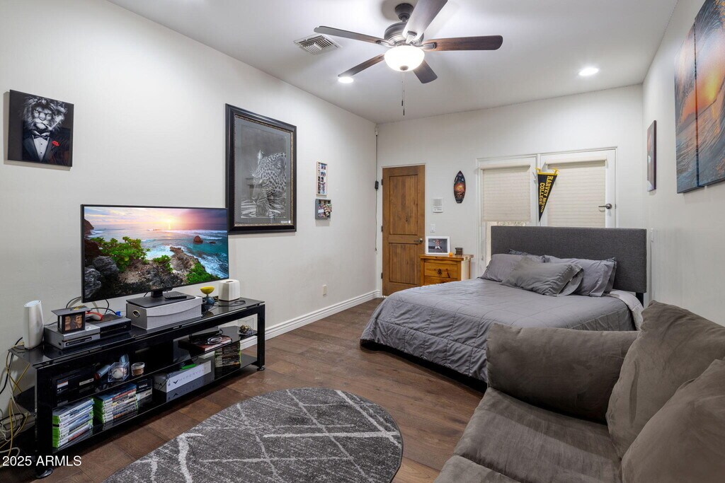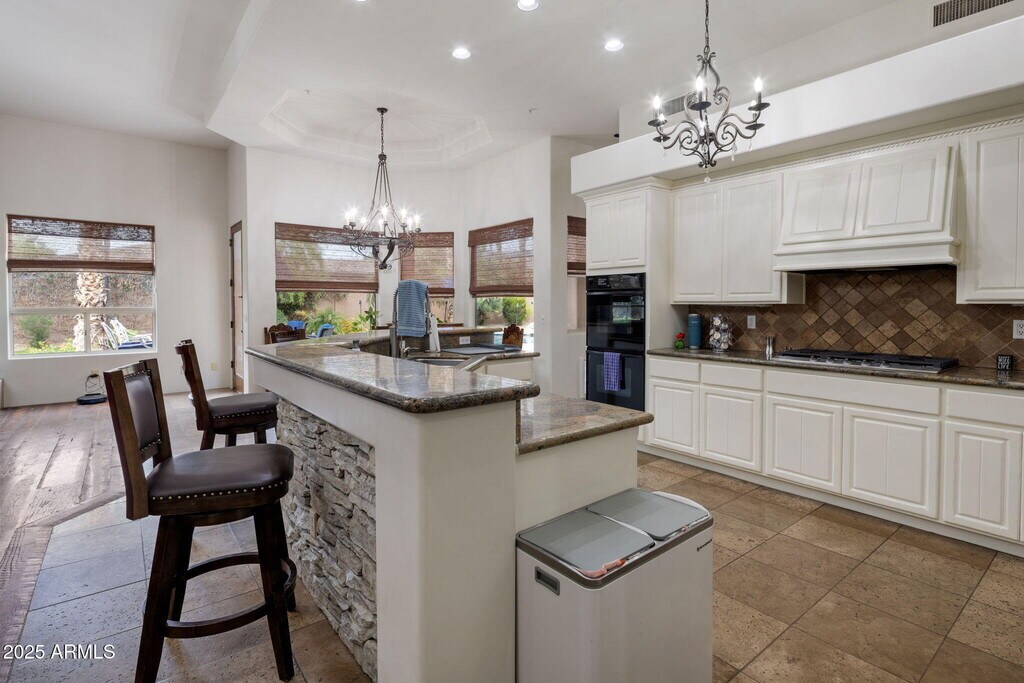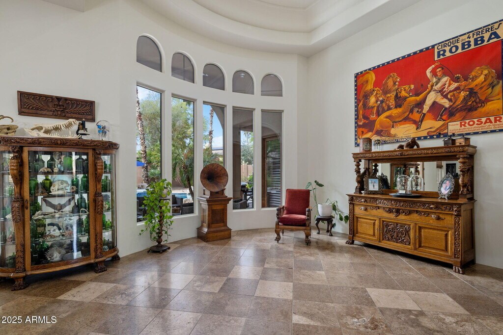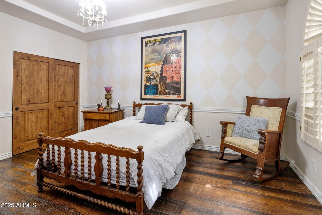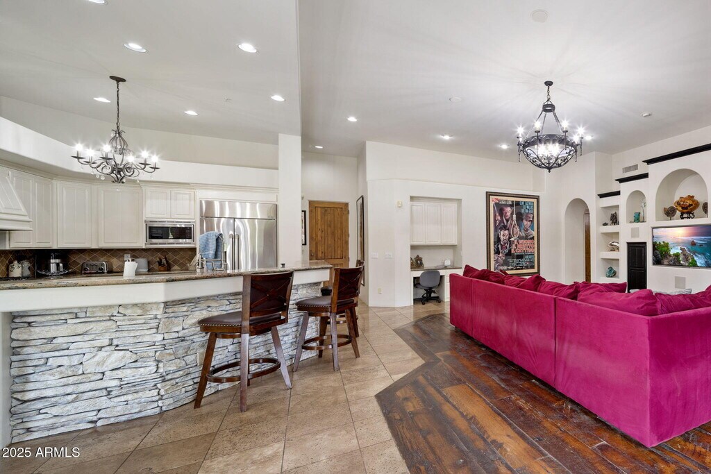 Welcome to Saddle Rock Ranch,an exclusive enclave of custom homes nestled in the highly sought-after 85259 zip code. This beautifully custom home sits on a desirable north-south lot surrounded by mature landscaping. It offers four spacious ensuite bedrooms,including a luxurious master suite featuring a stone fireplace and a versatile bonus roomperfect for a home office or gym. The open-concept kitchen flows seamlessly into a large family room complete with a wet bar,stone fireplace,and rustic reclaimed wood flooring. An additional media/bonus room boasts wood-beamed ceilings,hardwood floors,and a built-in refreshment centerideal for entertaining. Step outside to a private backyard with a built-in BBQ,a sparkling pool with spa. Community Tennis courts