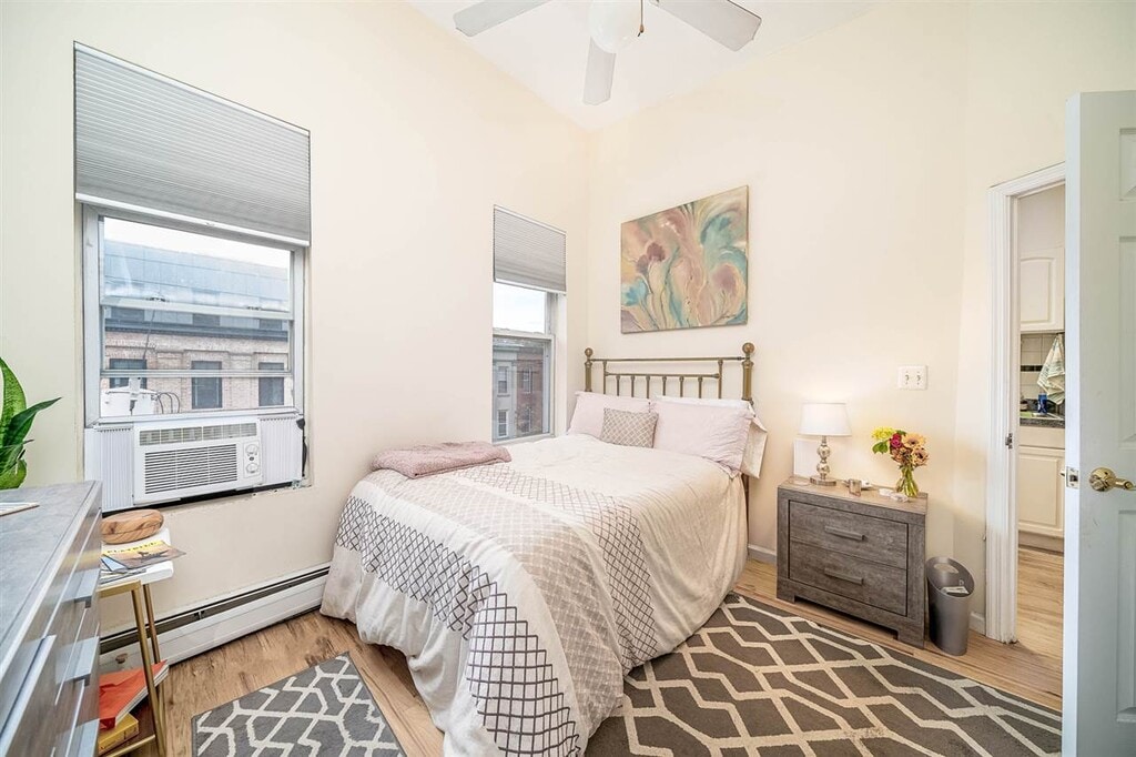 Perfect 1st & Bloomfield downtown location in a charming row house. 2 large bedrooms, 1 bath. Modern kitchen with dishwasher. Apartment is very bright with high ceilings, exposed brick, hardwood floors, ceiling fans & ample closet space. Close to everything - PATH, shopping, dining, and waterfront. Certified checks of 1.5 Month's Security Deposit + First Month's Rent. No smoking. No Pets. Available Dec 1st.