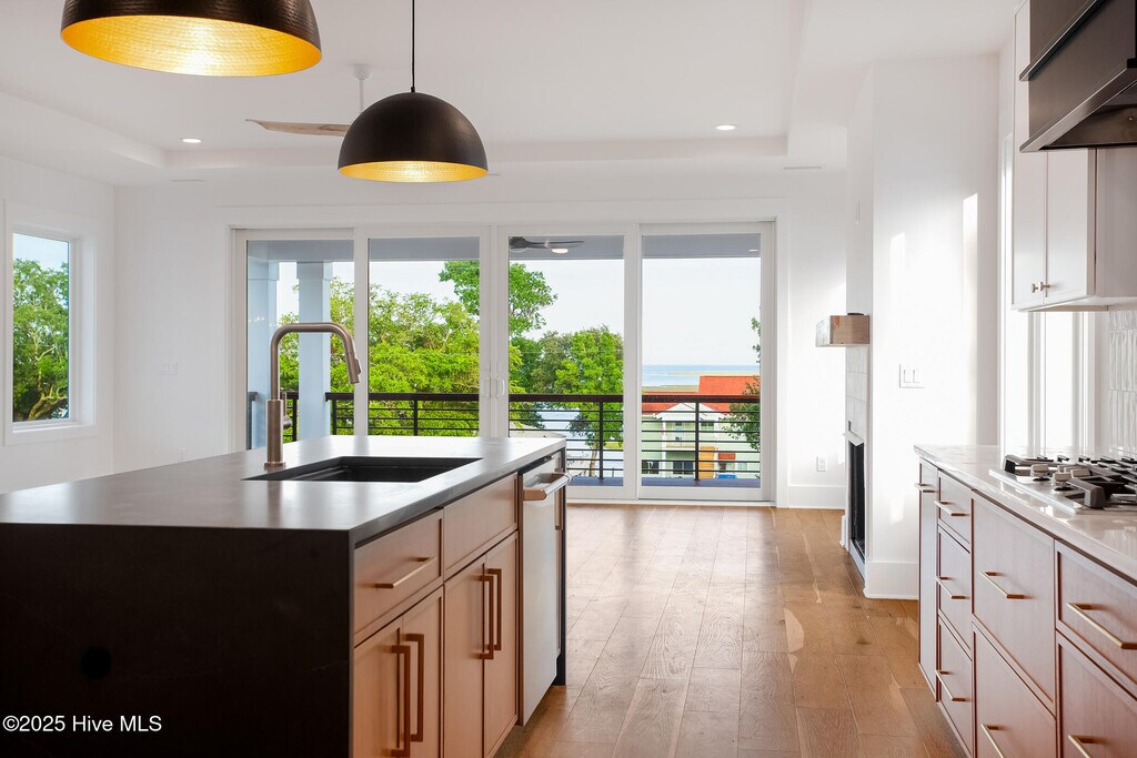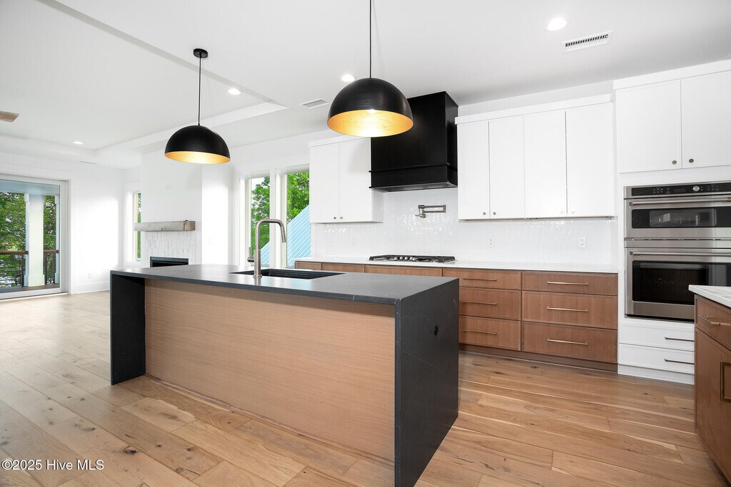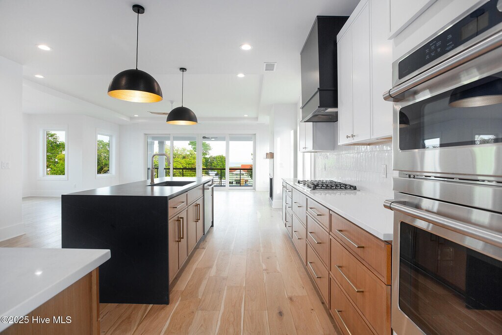 Available now for lease. Lease to own and seller finance options also available. Come experience coastal luxury in south Hampstead where you can foster your daily dose of ocean views and sea breezes are guaranteed. This BRAND NEW home comes with inspiring ocean and waterway views, offers membership boat ramp access within a 2 minute walk and is built with the highest craftsmanship and integrity. Newly completed by Gypstar Builders and designed by local architect Scott Sullivan, 109 A Broadview is a timeless home both in function and coastal modern style. Features include open concept living, full view Anderson casement windows, beautiful 1/2 inch pre-engineered white oak hardwood floors, trex decking & powder coated railing with IPE wood tops, custom kitchen design with cased vent hood, stainless GE Cafe appliances, central island with quartz waterfall design and single basin composite sink, gas fireplace, expansive master bath with walk in wet room, floor to ceiling tile, double vanity w/hanging pendant lights, tankless Rinnai HWH and elevator access to all levels. Generous living spaces include top floor living room, mid-level family room with an adjacent office, 2 additional bedrooms and a 4th bedroom/Den with full bathroom on the ground floor. No Hoa, No flood zone, boating access to the areas most desirable back beaches and anchorages, Hampstead schools and only a few minutes to N Wilmington make this a top contender for living and enjoying life near the water.