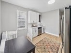 This two bedroom apartment was fully renovated and boasts new floors, kitchen, and updated bath. This unit comes with one assigned parking spot in the driveway and the exclusive use of the 2nd floor balcony. The kitchen is eat-in style with new cabinets, dishwasher, microwave, and other appliances. The large living room can accommodate most furniture setups and the home itself is quiet and bright. Proof of income & credit check required. Pets to be considered and no smoking, please.