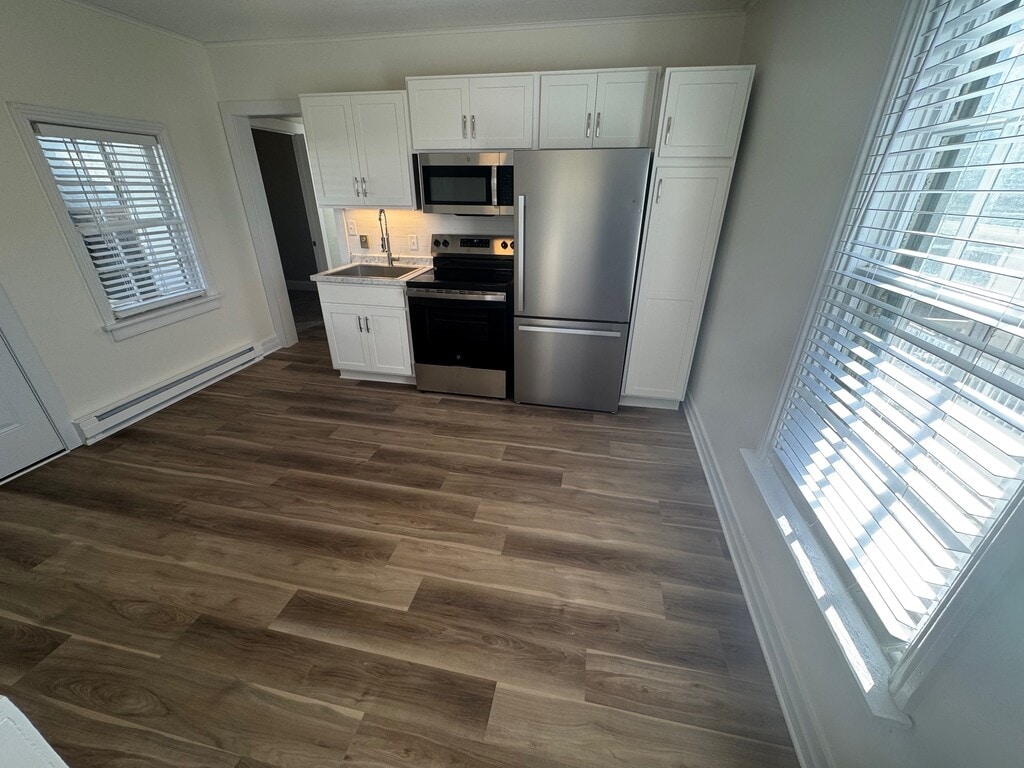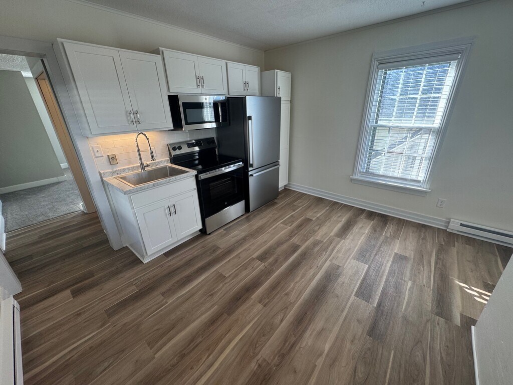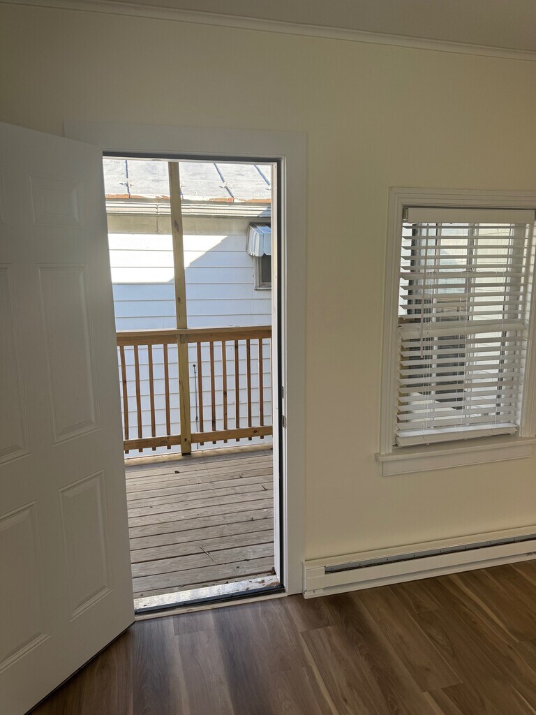 Renovated 2nd floor apartment with two bedrooms, one bath. Kitchen leads to a balcony. Shared back yard and off-street parking.