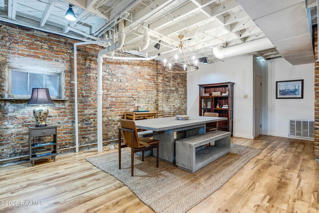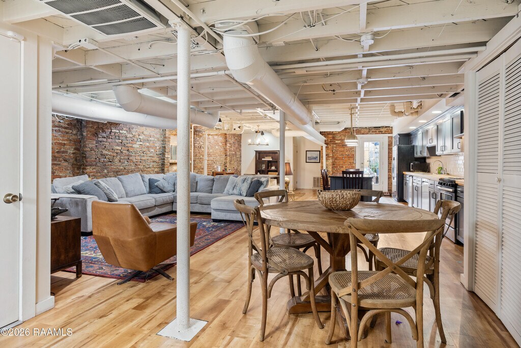 Downtown New Iberia charmer designed by renowned Owen Southwell and built in 1930, this three-story historic beauty is loaded with character and timeless appeal. A quaint foyer welcomes you with a staircase providing access to all floors. The fully remodeled first story features open living with exposed brick, a stunning kitchen offering abundant storage, butcher block countertops, a large granite island, living and dining areas, laundry closet, flex/storage room, and a one-car garage. Step outside to a private patio just off the kitchen--perfect for quiet mornings or entertaining. The second story retains its original charm and offers a living room with fireplace and built-in bookshelves, kitchenette, dining room, three bedrooms, and two full bathrooms--ideal for guests, multi-generational living, or future customization. The third story is equally impressive, featuring a kitchenette, breakfast nook currently used as a sitting area, living room with fireplace and built-ins showcasing custom detailed woodwork, home office, two bedrooms, a full bathroom, and a formal dining room currently serving as the primary bedroom. Each floor offers endless opportunities to tailor the space to your needs. Just steps from downtown, enjoy festivals, parades, the farmers market, shopping, restaurants, and the serene Bayou Teche. Historic charm truly meets modern design in this one-of-a-kind property. MLS ID