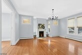 FANWOOD FIND! Move right into this spectacular, recently refreshed 2BR/2.5BA apartment located on the first floor & lower-level of a grand, owner-occupied Victorian residence just 2 blocks from the Fanwood train station. Enjoy high ceilings, hardwood floors & abundant windows throughout. Eat-in kitchen includes center island with breakfast bar & 4 stools, ample cabinetry, new refrigerator, BOSCHE dishwasher, under-cabinet lighting & French doors to the covered front porch. Expansive dining room features built-in storage & spacious living room boasts a decorative fireplace & French doors to cozy sitting room or office with wall of windows Two bedrooms, each with ample closet storage,1.5 updated baths & mud-room with coat closet complete the first level. Fabulous finished lower-level hosts recreation, laundry, storage & utility rooms, a 2nd full bath plus bonus spaces for exercise room or another office. Baseboard heating system in place with window AC units available. Tenant will have 1 assigned spot in driveway, on-street parking, use of porch, front & side yards. Construction on 2nd level unit in progress through summer 2026.