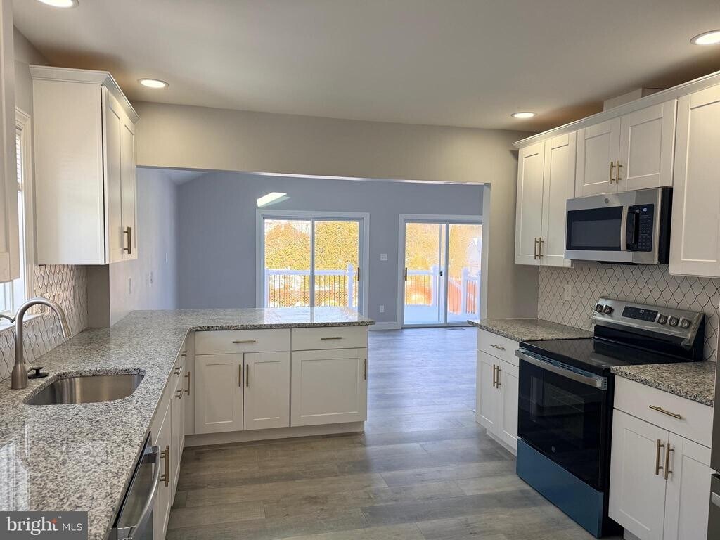 This 2400 square foot home has just been totally renovated and is ready to move into. Everything is newly updated and just beautiful! Hard surface flooring throughout. New HVAC and gas water heater. Kitchen is a cook’s dream with plenty of cabinets & granite counters and all new stainless-steel appliances. Kitchen is open to both the living room with a gas fireplace and the large family room with skylights. Family room features view with access to the deck and backyard. Two bedrooms are on the main floor each with lots of closet space. The main floor bathroom has a tiled shower/tub and completes this floor. Downstairs you will find an additional large living space with door to the back yard and plenty of storage/closets. The 3rd and 4th bedrooms are found in this lower level, both with wonderful closets with insert shelving. Each bedroom on this floor has its own bathroom. Separate laundry room/area. The yard is a great place to entertain or relax on the deck upstairs or lawn below. Yard is all fenced in. Just a short walk to local cafés, shops and the train. This house is in a great location. Pets will be considered with approval and pet fee. Sorry, no cats at any time. 12-month minimum lease.