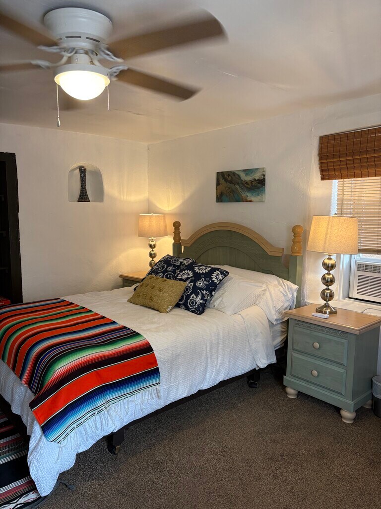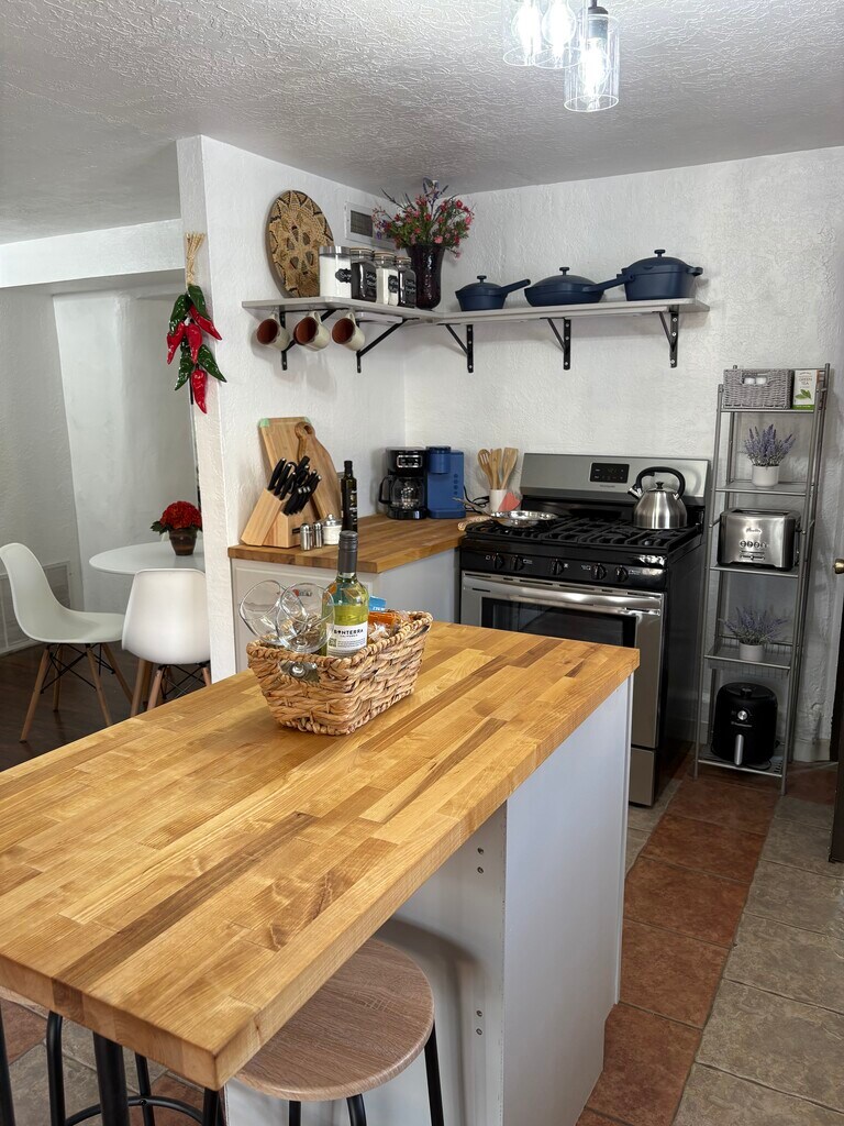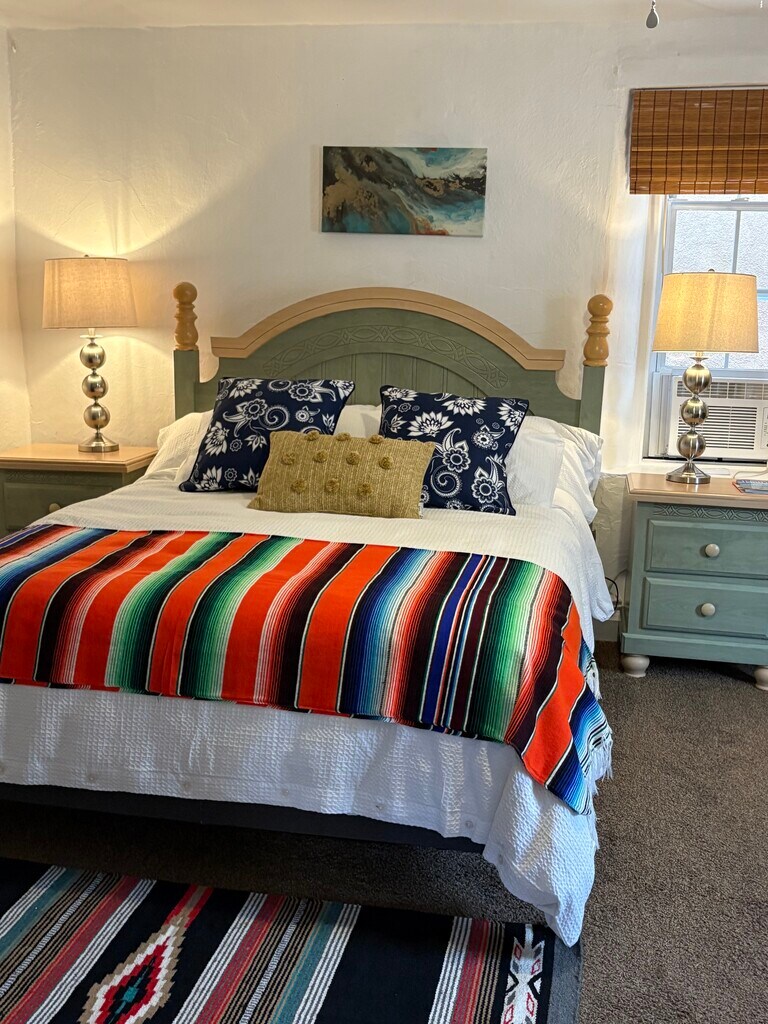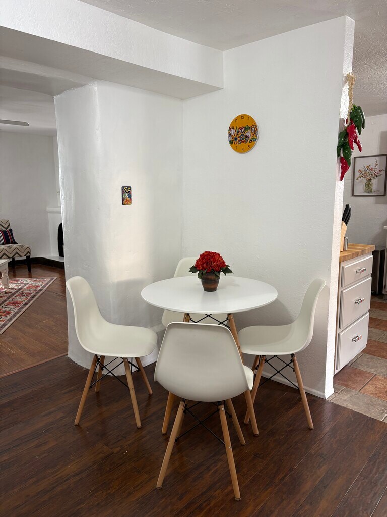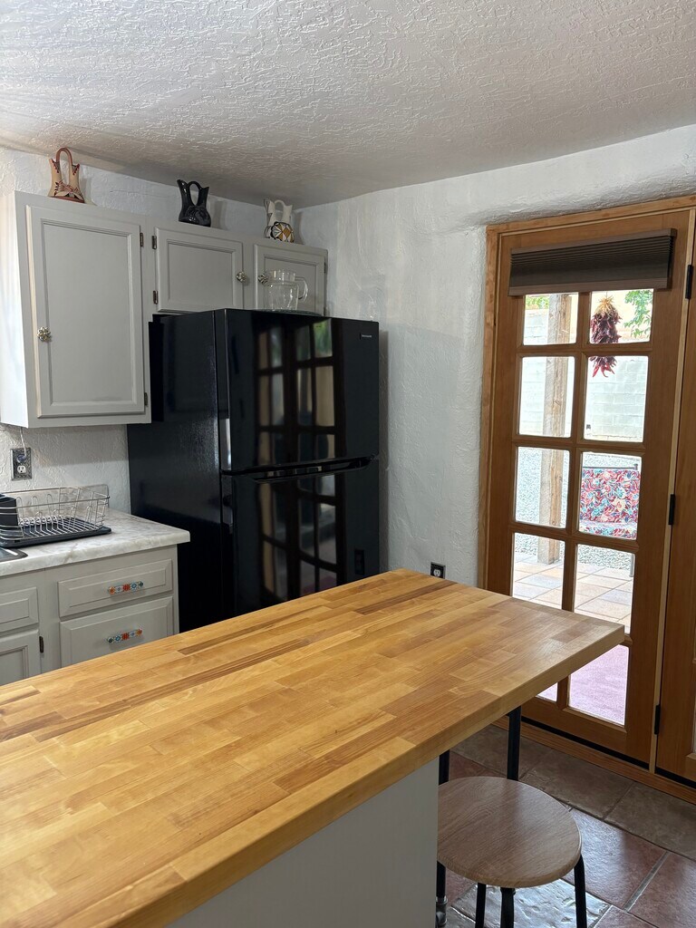 Stay in this Fully furnished Vacation home in Santa Fe, New Mexico, great for traveling businesspeople, families relocating, skilled workers, nomads and those pursuing academics. HOLIDAYS are around the corner!!! SPEND CHRISTMAS IN SANTA FE! ***STAY 3 DAYS $800, 7 DAYS $1800, OR THE ENTIRE MONTH FOR $3892.00 *** You will stay in one of the most sought-after historical neighborhoods, with all the amenities you need, luxury KING, QUEEN, two-bedroom, one full bath, short walk to Plaza, back door to the RAIL-YARD, close to everything, easy to plan your trip, plenty of parking, large yard space, A car is not necessary, as you are walking distance to everything. SLEEPS 4. ***CREDIT AND BACKGROUND REQUIRED*** House rules *Absolutely no smoking of any kind inside. *Absolutely no pets on beds or furniture, including sofa*Do not light candles or incense of any kind / fire hazard (the candles in the fireplace are there solely for show) thank you. *Please No cutting on butcher block counters- only use the cutting boards. *No Large Parties*No cats allowed. *Please steer clear of bamboo fencing in the backyard which protects historical structure. *Trash and recycle bins when full should be put out Tuesday evening, at the edge of the driveway for Wednesday morning pick up.... Thank you! *Property is listed for sale- guests must be willing to allow showings within a 24hr notice.