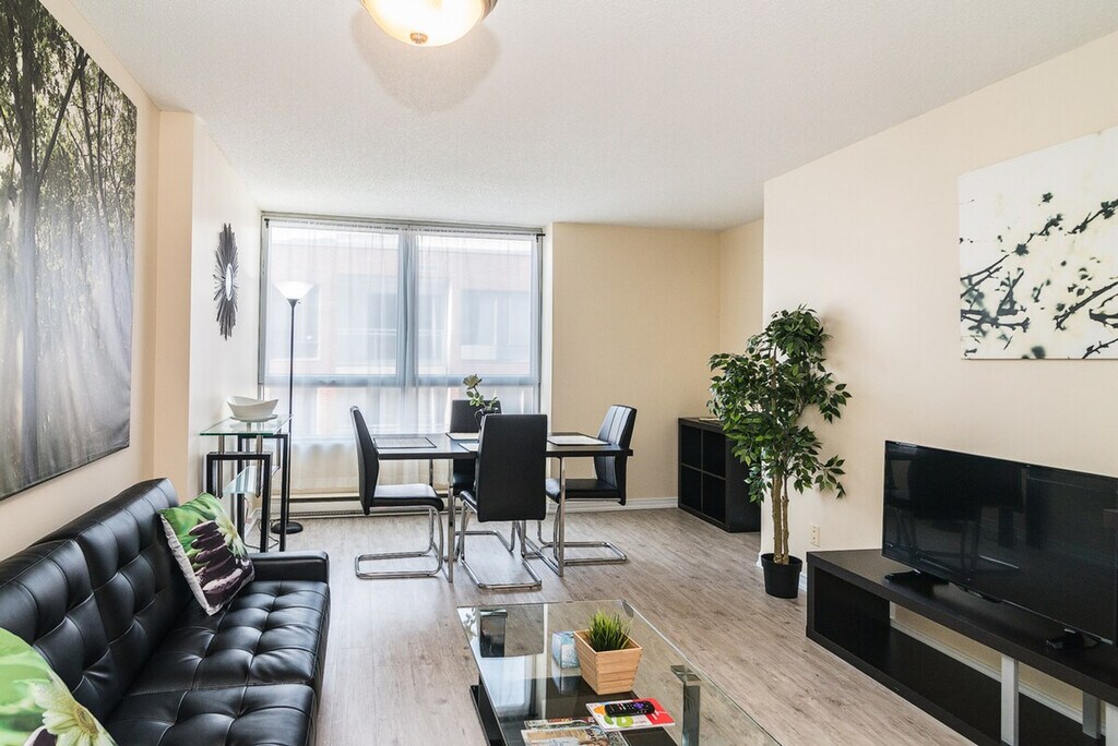 The advertised rate of C$2,655/month is the lowest available price, based on a 30 day(s) stay with a move-in date of March 22, 2026. Rates vary depending on the duration of stay, season, and other parameters. For exact pricing and additional pricing components, please visit our website and enter your desired move-in and move-out dates. The rate is applicable when billed upfront; it can be higher if billed in multiple payments. This wonderful apartment with plush furnishings is ideally located in downtown Montreal. It features a comfortable furnished bedroom and a sofa, with beautiful windows that flood the apartment with natural light. Enjoy your meals at home with the convenience of a completely equipped kitchen and a cozy dining room table. The furniture matches the beautiful natural design of this gorgeous apartment. Parking is available as per availability for an additional cost. Ideally located in downtown Montreal, this apartment offers easy access to the vibrant city life and its attractions. This apartment requires a minimum stay of 31 nights. [SI]