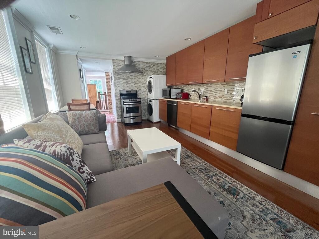 Beautiful, newly renovated studio in the heart of Old Town! FULLY FURNISHED!!!! What an easy move!! Sun streams through numerous windows for a light, airy space! Exposed brick details and European design are sure to impress. Sleek kitchen features top-ofthe-line SS appliances and separate dining area. W/D in unit. ALL UTILITIES INCLUDED & cable ready. No pets/smoking. Just steps to vibrant King Street. Tenant pays for internet/cable.