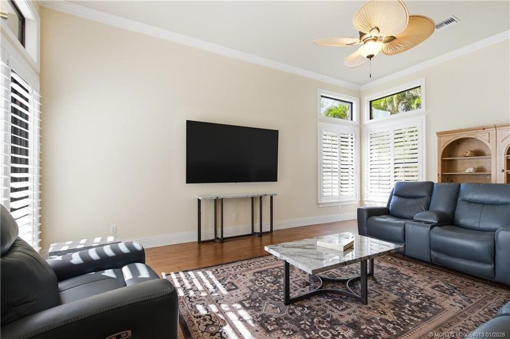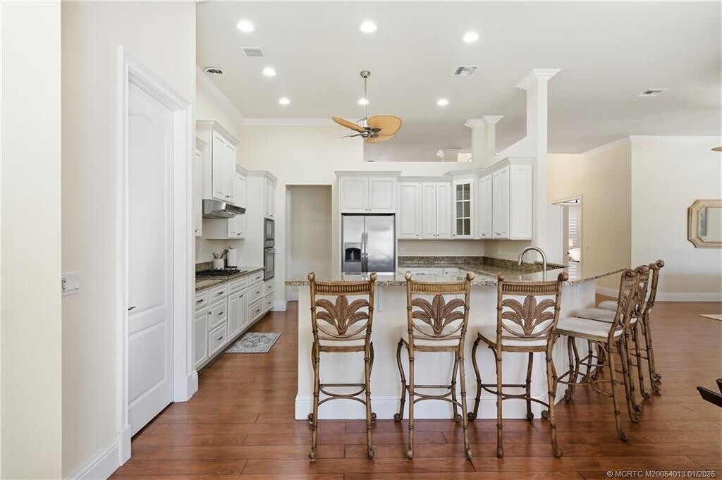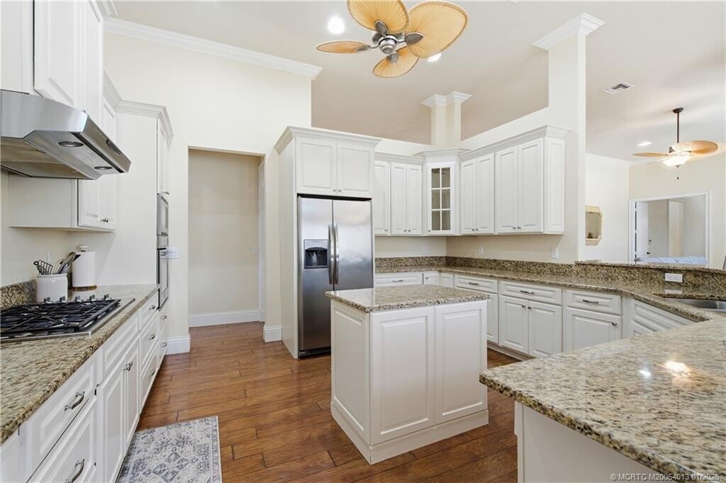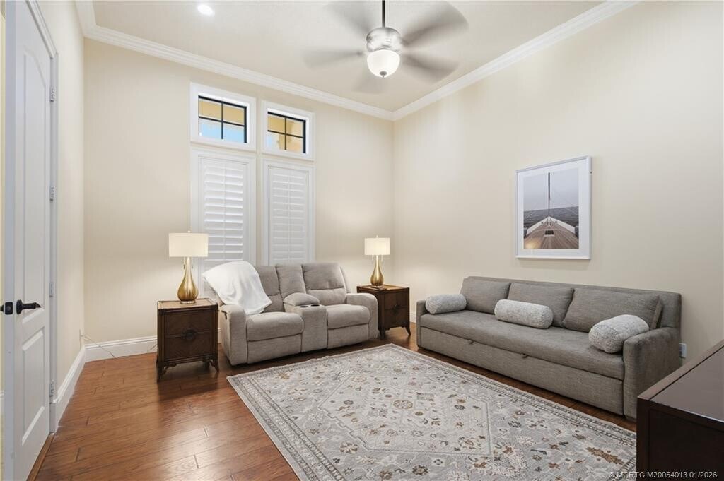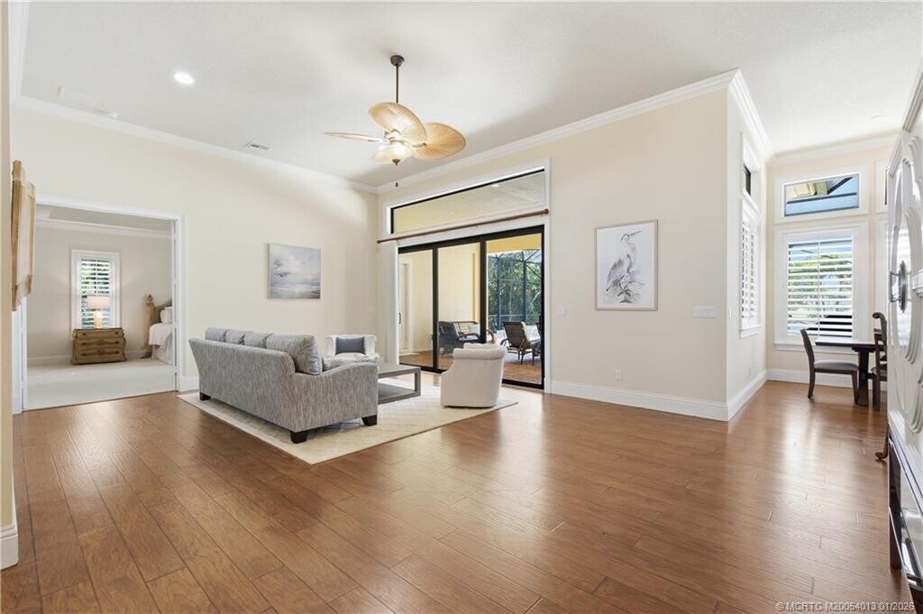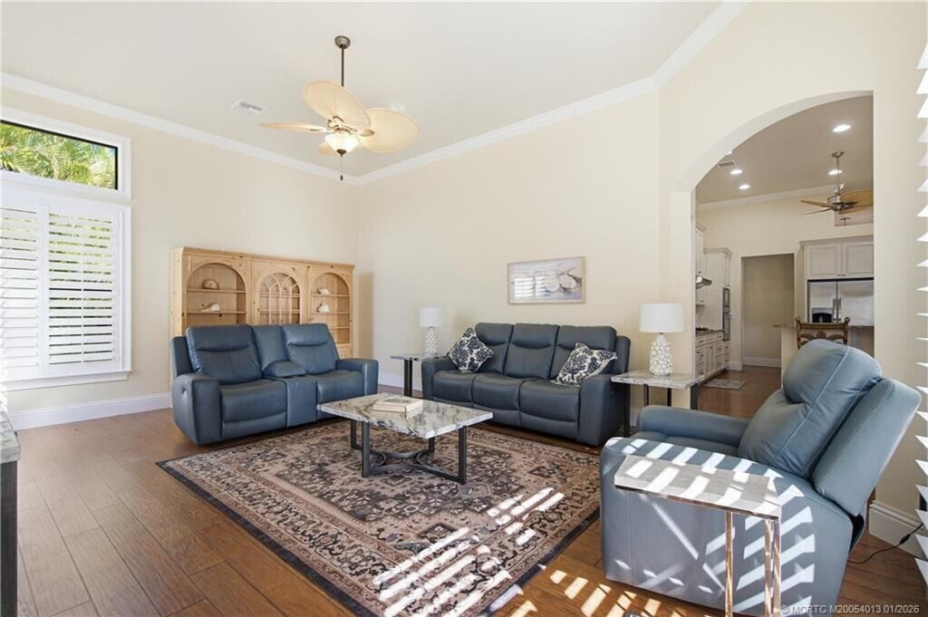 Boater's Paradise! Deep-water,ocean access,16k lb. boat lift and no fixed bridges from this elevated South Florida riverfront home. Featuring 3 spacious bedrooms,plus a large den,this open-concept residence offers high ceilings,warm wood floors,and plantation shutters throughout. The expansive kitchen/great room flows seamlessly to the pool and tropical backyard,surrounded by mature landscaping for privacy and beauty. The 4-car garage has large ceilings for all the toys. Close to town,minutes to fine dining all inside the Gated community known as the ''Island of Ravello''. Available for shorter- or longer-term leases. MLS# M20054013