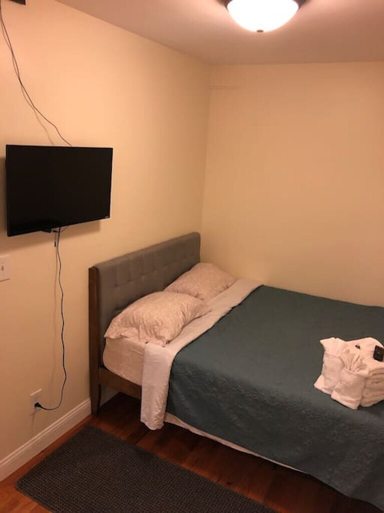 Discover a cozy city retreat and feel at home in this bi-level, three-bedroom apartment. Nestled conveniently just a block from the Green Line Street Car, this apartment offers seamless access to Boston's vibrant heart. This is a second-floor apartment with gentle stairs for ease of access. Fully equipped for your needs, this apartment features air conditioning, an inviting living area with a plush sofa and a sleek television, and a completely equipped kitchen with modern appliances. The serene bedrooms are provided with fresh linens for peaceful nights, and the spacious bathrooms are adorned with vibrant shower curtains for a cheerful start. Pets are welcome on a case-by-case basis and are subject to an additional fee. This apartment is ideal for long-term stays, perfect for students and professionals. With a short walk to Cleveland Circle, Beacon Street, and Comm Avenue, and walkable to BC, this apartment is the perfect mix of homey comfort and city convenience. Bookings require a minimum stay of 30 nights. Includes a functional workspace with a desk for any business travelers. Enjoy home comforts with provided linens and kitchen necessities. [SI]