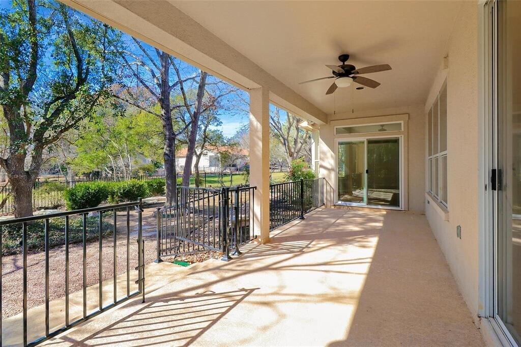 Beautifully remodeled and move-in ready, this home is a MUST SEE! Open floor plan with updated kitchen including granite countertops and farmhouse sink, custom cabinetry with pull-outs, pantry, butcher block island and stainless steel appliances, refrigerator included. Breakfast nook and dining room, living room with gas fireplace and beautiful built-in storage. Large primary bedroom with hardwood floors, sliding door opens to patio and fully remodeled primary bath with walk-in shower, large closet with built-in storage. Laundry room with sink and new front load washer & dryer included. Beautiful office with built-ins and hardwood floors. Plantation shutters throughout the home. This back yard is the envy of the neighborhood! You will enjoy viewing the local wildlife on the covered patio with gas grill hookup, overlooking the stunning park like fenced yard, backing to a green space with seasonal creek! *Yard service paid by owner* Lease period access to amenities available for one-time $100 badge fee per person payable to the Sun City Texas Community Association of which $50 is refundable when badge is returned to HOA at end of lease. Golf and some amenities are extra. See for details. Sun City has multiple golf courses, tennis, pickleball, trails, ponds, multiple amenity centers, exercise equipment and classes, indoor and outdoor pools for swimming and exercise, and numerous clubs and activities. **Short term lease considered** MLS ID 8736194