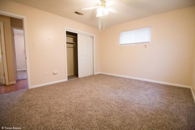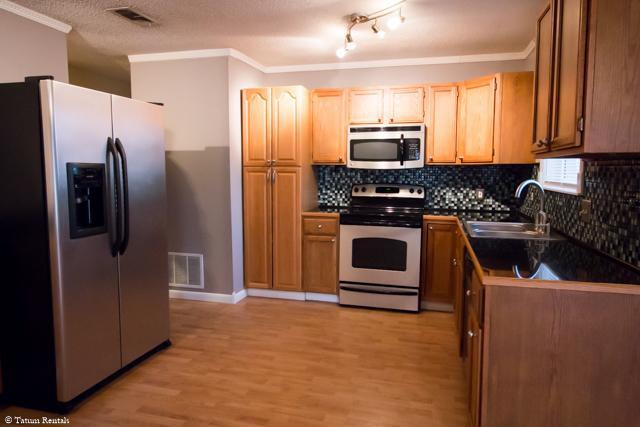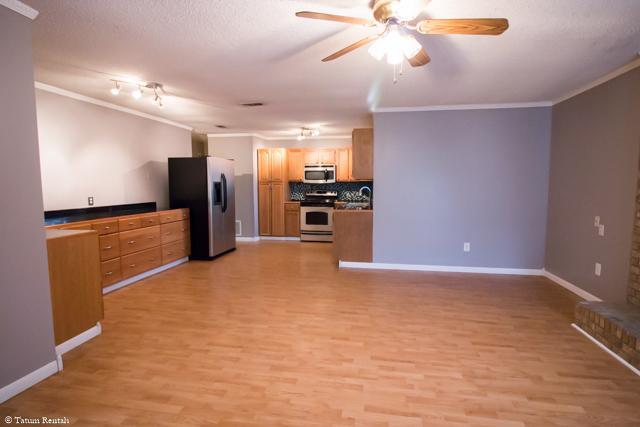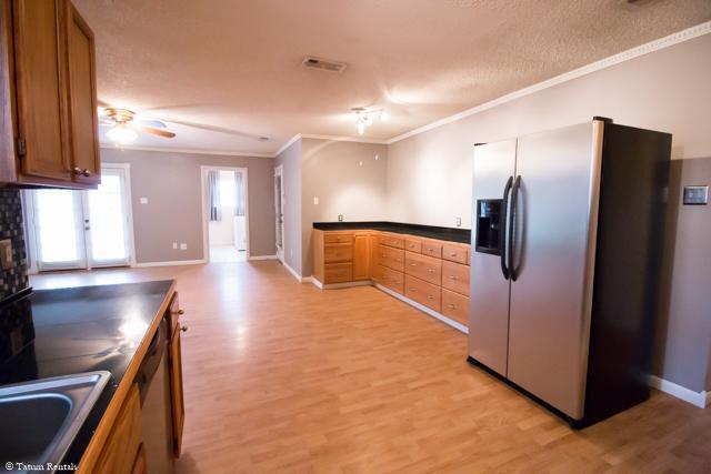3 Br/2 Ba home. Great for entertaining. Spacious kitchen connected to a family den area with a wood burning fire place. Loads of cabinet space! Large fenced backyard. Separate laundry room with storage space. Neighborhood pond with walking trail and playground nearby. Application and credit check required.