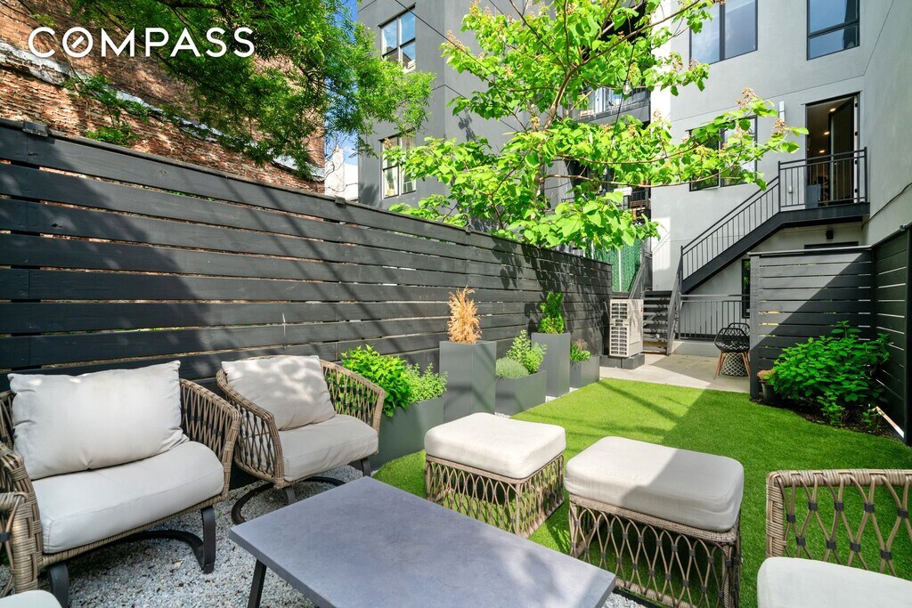 Lease Start Date March 1 Welcome to your urban oasis at Troutman Street, where sophisticated city living meets the charm of a private retreat. This exquisite 2BR 2BA condo rental in the heart of Bushwick offers a luxurious experience, complete with a MASSIVE 460-square-foot private backyard for ultimate relaxation and al fresco dining. Step into this modern residence and be greeted by an infusion of natural light, courtesy of the expansive Western windows. The open kitchen is a culinary artist's delight, boasting Samsung range and microwave, Frigidaire dishwasher, Haier Fridge, quartz countertops, and ample space for both creating gourmet meals and entertaining guests. The bathrooms are a haven of tranquility, featuring timeless Terrazzo floors with radiant heating, a soaking tub, and a rainfall shower. Aged brass hardware, handmade cream porcelain tiles, and oak vanities complete the elegant design. For added convenience, enjoy the in-unit LG washer/dryer. With oak floors underfoot, central heating, soundproof windows, and central air conditioning, comfort is assured year-round. Positioned in a vibrant neighborhood, you'll find an array of attractions such as House of Yes, Red Pavilion, and Maria Hernandez Park, alongside dining gems like Roberta’s and Chiangmai Diner. Transportation is a breeze with easy access to the M train at Central, the J/M/Z at Myrtle Avenue, or the L train at Morgan. Be the first tenant to occupy and claim your piece of luxury, and embrace the dynamic culture of Bushwick – elegance and wit await at your new home. * Unit can be delivered partial or fully furnished as options * Pets allowed