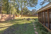 This freshly painted 3 bedroom, 2 bathroom property features high ceilings in the living room and primary suite, open floor plan, dining area, washer/dryer, wood burning fireplace, screened porch, 1 car garage, and fenced backyard.