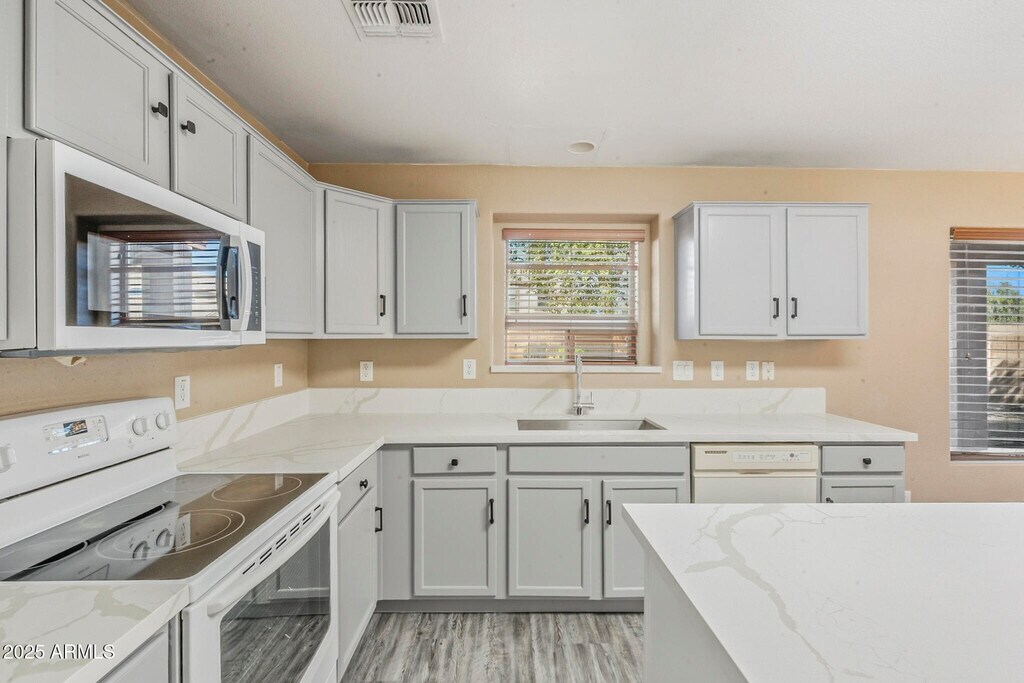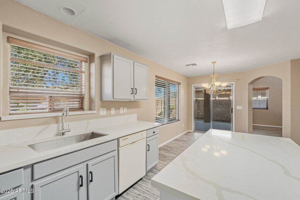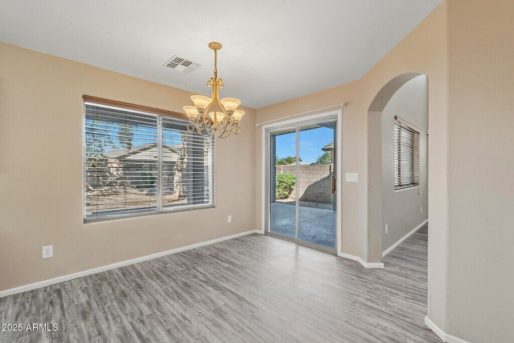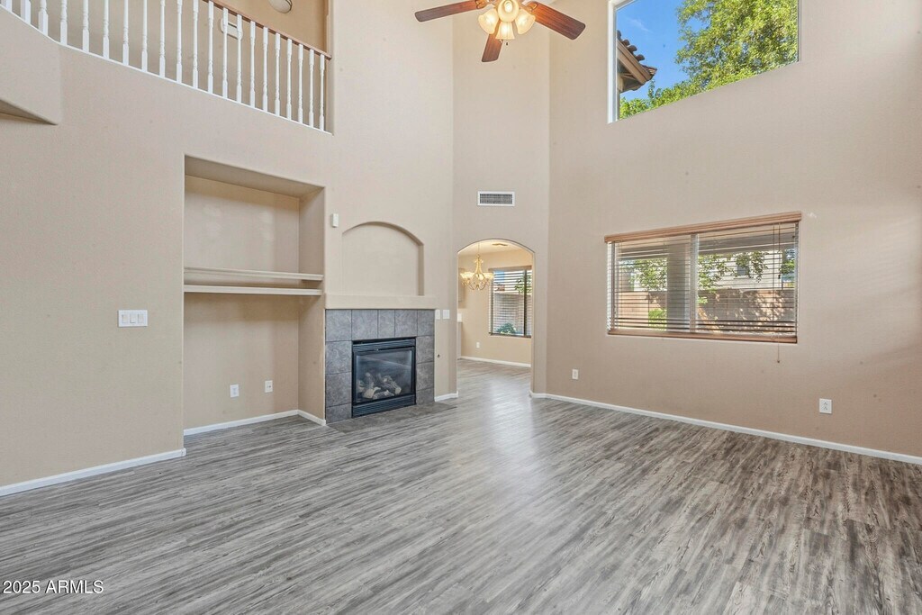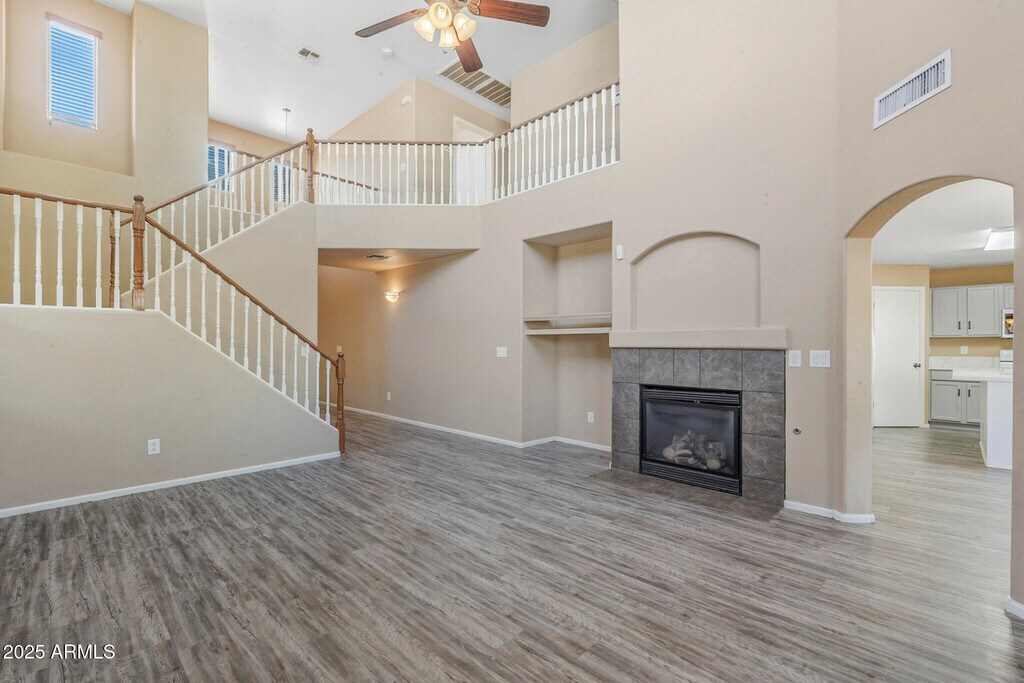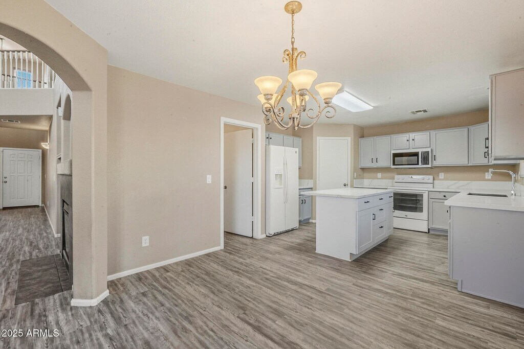 No Application Fees! Beautiful 4 bedroom,3 bathroom home located in the highly desirable Johnson Ranch community. This well-maintained home offers great curb appeal and a bright,open floor plan with 20-foot ceilings in the living area,a cozy gas fireplace,and a spacious loft upstairs. Interior features include two-tone neutral paint,ceiling fans in each room,upgraded window blinds,and abundant natural light throughout. The large kitchen features extended countertops,generous cabinet space,a separate pantry,dining area,and all appliances included. The home also offers a full bedroom and bathroom on the main level,perfect for guests or flexible living arrangements. Washing machine and dryer are included,and the two-car garage provides ample parking and storage. The private backyard offers space for relaxing or entertaining in this peaceful community setting. The Johnson Ranch community offers residents access to multiple pools,parks,walking paths,clubhouse,golf course,playgrounds,lake,and greenbelt areas. Conveniently located near Hunt Highway,this home is close to shopping,dining,and schools in San Tan Valley with easy access to Queen Creek and surrounding areas. All Denali Real Estate residents are automatically enrolled in the Resident Benefits Package (RBP) for $55.00/month which includes Renter's Liability Insurance,Credit Building to help boost the resident's credit scores with timely rent payments,up to $1M Identity Theft Protection,HVAC air filter delivery (for applicable properties),our best-in-class resident rewards program,and much more!