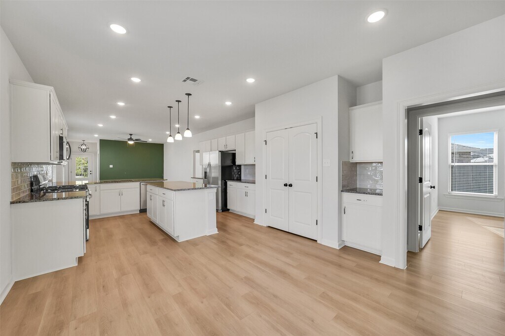 Beautiful single-story home in the sought-after Emberly Subdivision featuring an inviting open-concept layout with 4 bedrooms and 2 full bathrooms. The kitchen offers granite countertops,a large island,custom backsplash,pendant lighting,and energy-efficient stainless steel appliances including an electric range,dishwasher,and exterior-vented micro hood. Durable vinyl plank flooring flows throughout,complemented by LED lighting and stylish matte black fixtures. The spacious primary suite boasts a walk-in closet and dual sinks. Enjoy ceiling fans in the living room and primary bedroom,a tankless gas water heater,high-efficiency low-E tilt-in windows,and an upgraded HVAC system. Step outside to a covered patio overlooking the fully sodded,fenced backyard with a sprinkler system—ideal for entertaining. Sitting on an oversized lot,this home also offers a two-car garage with automatic opener and excellent curb appeal. MLS# 47011075