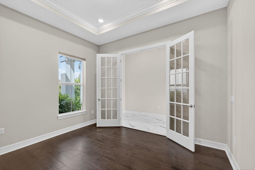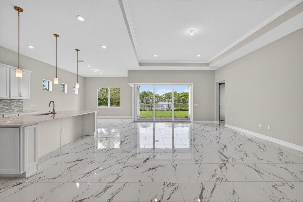 Stunning 3BR/4BA home on an extra-wide 90' premium lot with spectacular water, fountain, park & bridge views! This beautifully upgraded home features a 3-car garage with 4' extension, corner glass rear sliders, and a Coastal elevation. Interior upgrades include a flex/bonus room with double glass French doors, cabana bath, walk-in double shower in the primary suite, and upgraded flooring (porcelain, wood, carpet). Designer kitchen and baths feature upgraded cabinets, countertops, tile, backsplash, hardware & appliances. Additional highlights: upgraded lighting, tankless water heater. Rare opportunity for luxury, space & views in one exceptional property. Avenir offers upscale amenities, incl. pools/spa/waterpark, kids club, fitness center, tennis, pickleball, clubhouse, walking trails.