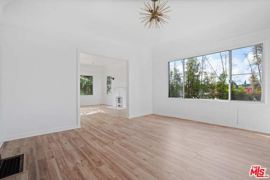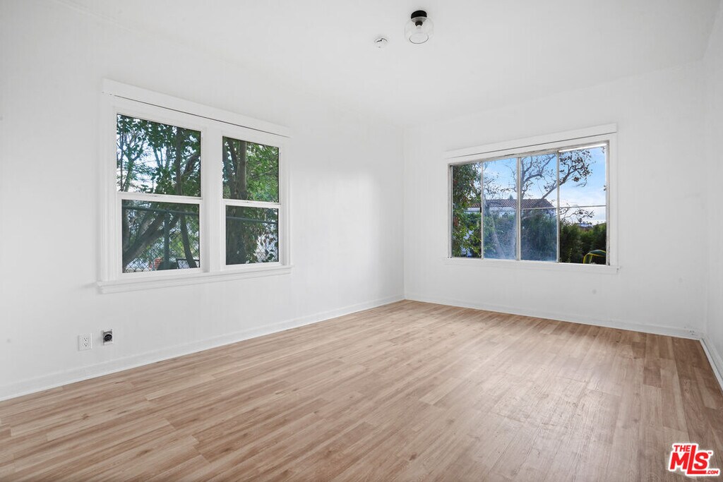 1091 S. Mansfield is a great opportunity to live in a recently remodeled 2 bedroom + 1 bath located in a beautiful- peaceful duplex that is set back from the street. Home was updated in 2023. Many great original details throughout, plus newer laminate warm oak wood floors throughout and crown molding, accenting the spacious living and dining room with tree top views were you can catch the LA sunsets! The kitchen has newer stove, microwave, refrigerator with newer stackable washer/ dryer in laundry area. Quiet neighborhood and centrally located, this is an ideal location close to transportation, Target, Sprouts, and restaurants including Museum Row, The Grove, and the Metro Purple Line. Available April 2026. Street parking only. **Furnished photos are virtually staged** 48 hr. Showing Notice Required ** MLS# 26647441