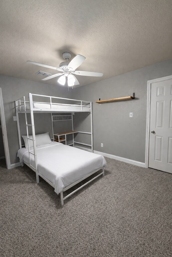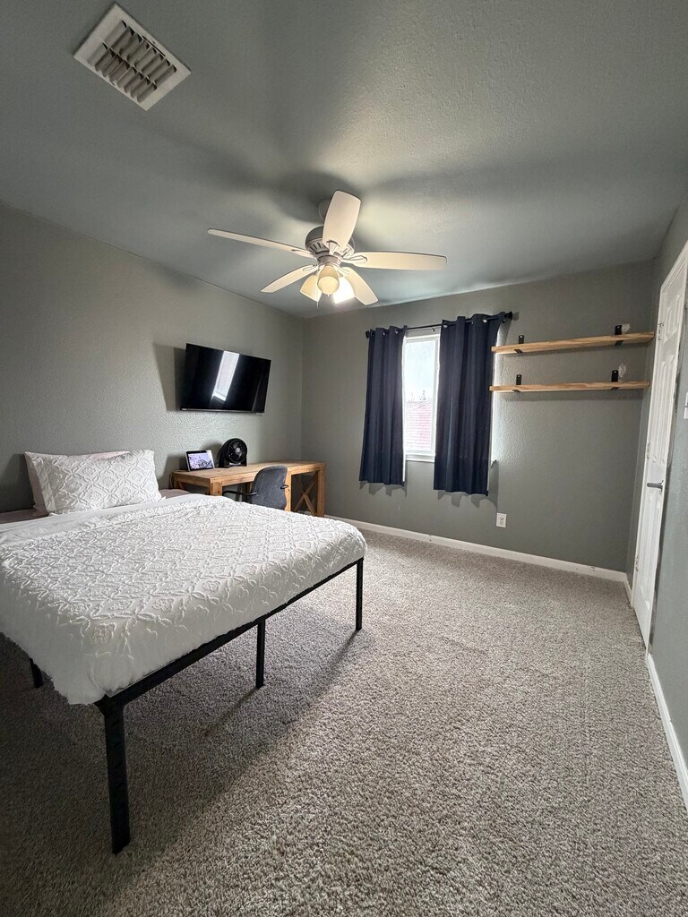 Updated home in the quiet Wild Horse Vista neighborhood. First month's rent will be prorated! With a fenced back yard, garage, and large open living spaces. Primary bedroom has large walk-in closet. Partially furnished with bunk beds and king size bed (optional). Two car garage and street parking available. Small storage shed in back yard for your toys!