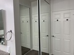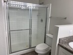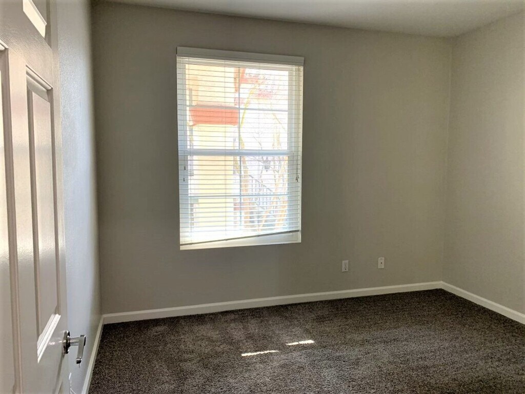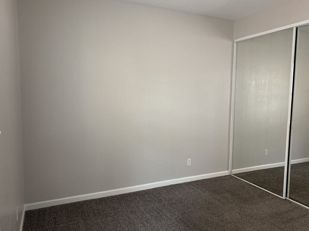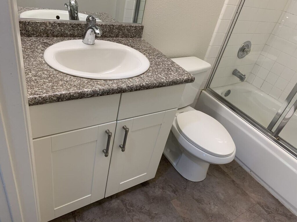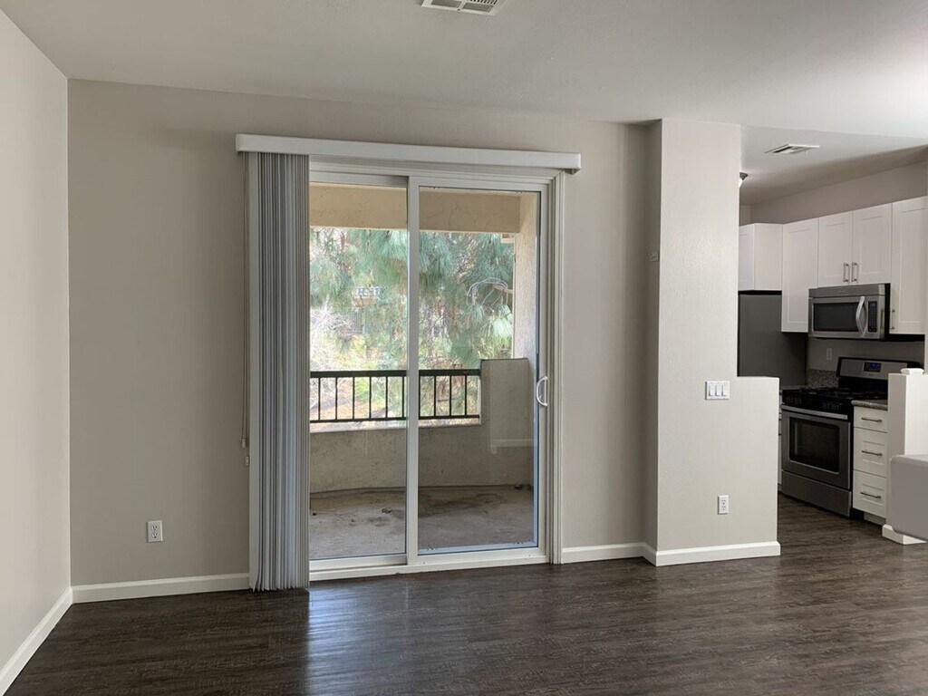 Air-conditioned top floor condo in Sabre Springs features dual pane windows, granite counter tops and stainless appliances in kitchen with upgraded white cabinetry with easy-glide drawers, a faux fireplace in living room, a tree-lined balcony, modern charcoal color flooring and fresh neutral paint throughout. Appliances include refrigerator, gas range/oven, dishwasher, built-in microwave and full-size washer and dryer. The Master Bedroom and Bath Suite has two large mirrored closets, a dual-sink granite vanity and shower. The hall bath has single granite vanity and tub/shower combination. One carport is included close to unit and open spaces are all 48-hr. parking for additional vehicles or per HOA Rules. Just steps to one of the two community spas, and there is a community pool and laundry facility as well. Water and trash included. No Pets. Utopia Management x1193 DRE01197438