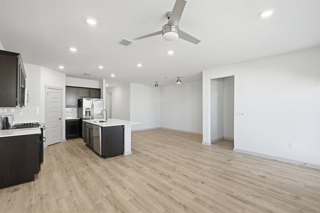 This beautifully maintained 4-bedroom, 2-bath home offers a modern and functional open floor. The open-concept layout connects the living, dining, and kitchen areas, is an ideal space for entertaining guests or enjoying quality time with family. The kitchen featuring quartz countertops, a quartz island, gas range with double oven, recessed lighting, pantry, and comes fully equipped with a refrigerator, washer, and dryer. The home includes ceiling fans, exhaust fans, and blinds throughout for comfort and efficiency. The spacious primary bedroom has a walk in closet, ceiling fan and carpet. The primary bathroom boasts dual vanities, a walk-in shower, linen closet, and a walk-in closet. Additional highlights include a tankless water heater, irrigation system with rain detector, covered patio, gutters around the home, garage, privacy fence with two iron fence sections on each side and a camera system. Safety features include smoke detectors in all rooms and a carbon monoxide detector on hallway. Step outside to a covered, outdoor space, ideal for hosting gatherings or simply enjoying the fresh air. Residents enjoy the short distance to swimming pools, basketball, a clubhouse, parks, picnic areas, there's always something for everyone! Beyond the community's amenities, this property offers the convenience of proximity to Domain and an array of popular shopping and dining, hospitals and major employers. Whether you seek recreational activities, relaxation, or the excitement of city life, this home provides a perfect blend of comfort and convenience and is ready to welcome you home! MLS ID 1477111