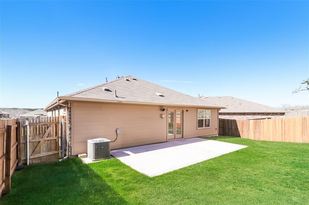 Single level 4-bedroom/2-bath home in Pioneer Crossing situated on a quiet cul de sac street. Luxury vinyl plank flooring, carpet in the bedrooms, open floorplan, granite countertops, farmhouse sink, private fenced yard with large patio, W/D Connections, and two-car attached garage. 4th bedroom great for home office or flex space. Easy access to IH35 and Toll 130 makes for an easy commute. Ready for move in January 2026. Small pets negotiable with additional deposit and fees. MLS ID 2791193