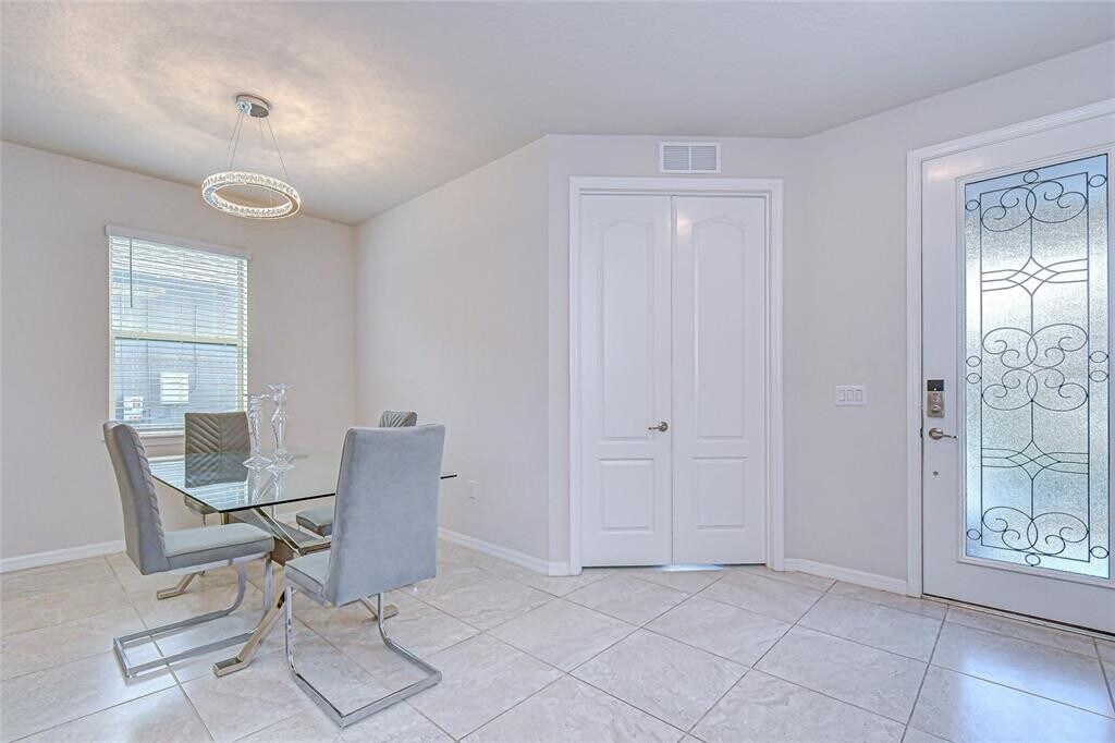 Welcome to an exceptional residence where luxury,comfort,and modern sophistication converge. From the moment you arrive,the west-facing front porch creates an unforgettable first impression,enhanced by remote-controlled designer lighting and a ceiling fan,all framed by elegant,low-maintenance rock landscaping. Step inside to a light-filled interior where expansive 21"×21" ceramic tile flooring sets a refined tone throughout the entire first level and all full bathrooms. The thoughtful layout includes an executive office or flex room,as well as a beautifully appointed first-floor bedroom with a full bathroom,perfect for guests or multi-generational living. At the heart of the home,the chef’s kitchen exudes contemporary luxury with quartz countertops,a seamless sink,premium stainless steel smart appliances,a generous 4–6 seat quartz island,rollout trays in the lower cabinets,pendant-ready lighting,and an oversized pantry with true butler-style storage capacity. Sparkling crystal light fixtures elevate both the dining room and breakfast nook,adding a touch of everyday glamour. Upstairs,a perfectly positioned second-level laundry room serves thoughtfully designed bedrooms and elegant full bathrooms,each featuring quartz countertops,seamless sinks,abundant custom-style storage,and sleek glass-enclosed showers. The primary ensuite stands out as a private retreat with upscale finishes,spa-style ambiance,and abundant natural light. This residence lives as a true next-generation smart home with Nest thermostats,a MyQ garage system,Schlage keyless entry,and a comprehensive Ring security suite that includes a hard-wired rear floodlight camera,a wireless driveway floodlight and camera,and a hard-wired Ring doorbell. High-end mechanical and structural upgrades ensure long-term value and unmatched peace of mind,including EV charging capacity,a Generac outdoor wall inlet with whole-house interlock supported by a Lifetime Manufacturer Warranty and $50,000 Connected Equipment Warranty,a 2025 water heater with expansion tank,a Culligan water softener located in the garage,a Tenax in-wall pest control system,wind mitigation features for insurance savings,and a utility sink in the garage. The outdoor living experience is truly extraordinary. An extended screened lanai offers year-round comfort and overlooks a serene pond,creating the perfect setting for peaceful mornings or dramatic sunset views. The large lot provides both privacy and versatility for outdoor enjoyment. Perfectly positioned for convenience,this home offers easy access to I-4,I-75,and major Tampa Bay highways,making commuting simple and efficient. Blending high-end finishes,abundant storage,advanced smart-home integration,spa-inspired bathrooms,and an intuitive floor plan,this move-in-ready home delivers an elevated lifestyle rarely found at this level. Schedule your private showing today and experience the ultimate fusion of contemporary luxury and everyday convenience. MLS# TB8458451