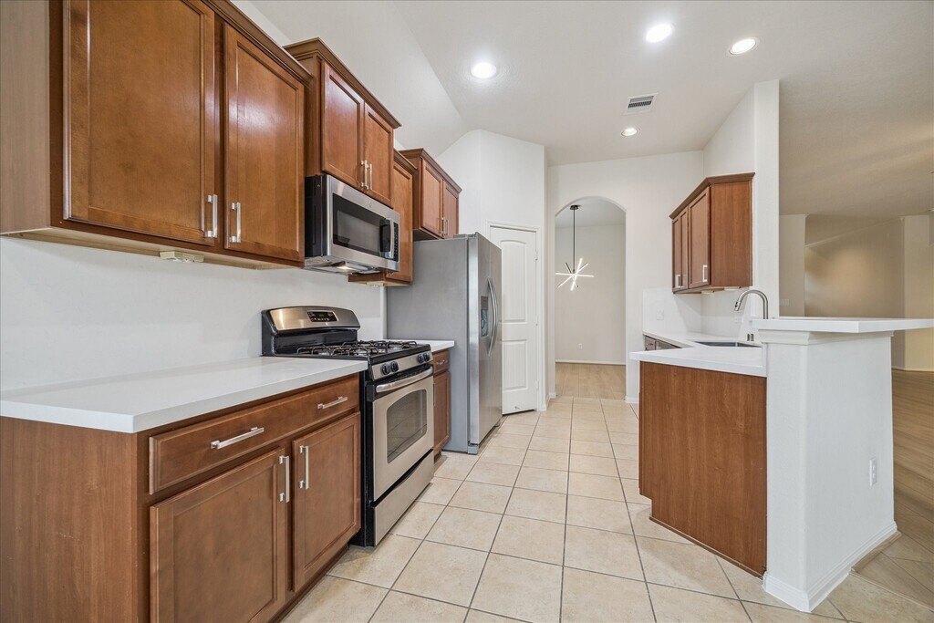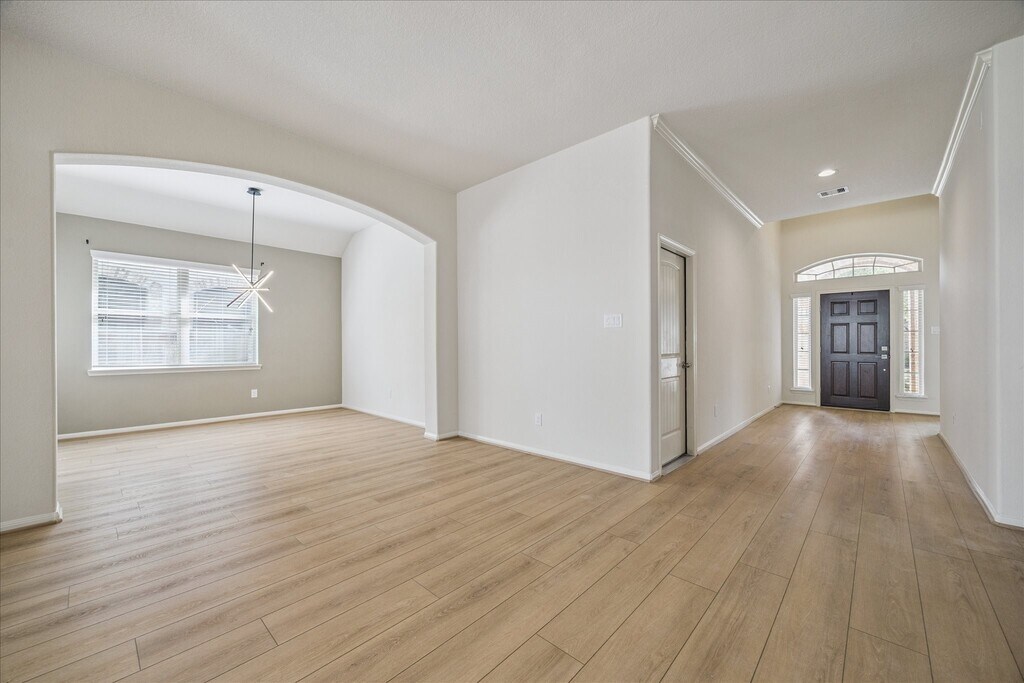 Charming one story home at the end of a cul de sac in top rated school district. No carpeting! new flooring just installed. Freshly painted. Open floor plan where dining room,living room and kitchen are open to each other. High ceilings.Kitchen has new quartz countertops with new deep stainless sink and all stainless steel appliances. Fridge,washer/dryer all included. Large primary bedroom (18x13). Beautiful landscaped back yard with pergola and a fire pit. Easy access to Westpark tollaway and Grand Parkway. Great shopping at nearby La Centerra Cinco Ranch. Community pool,tennis courts and fitness center available to tenant for small fee through HOA. Playgrounds and parks abound in this community. MLS# 29349105