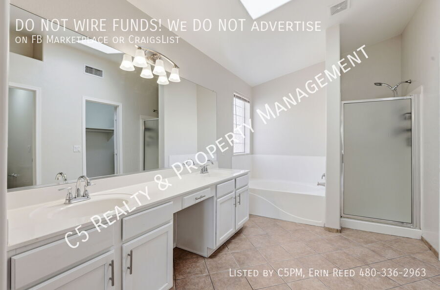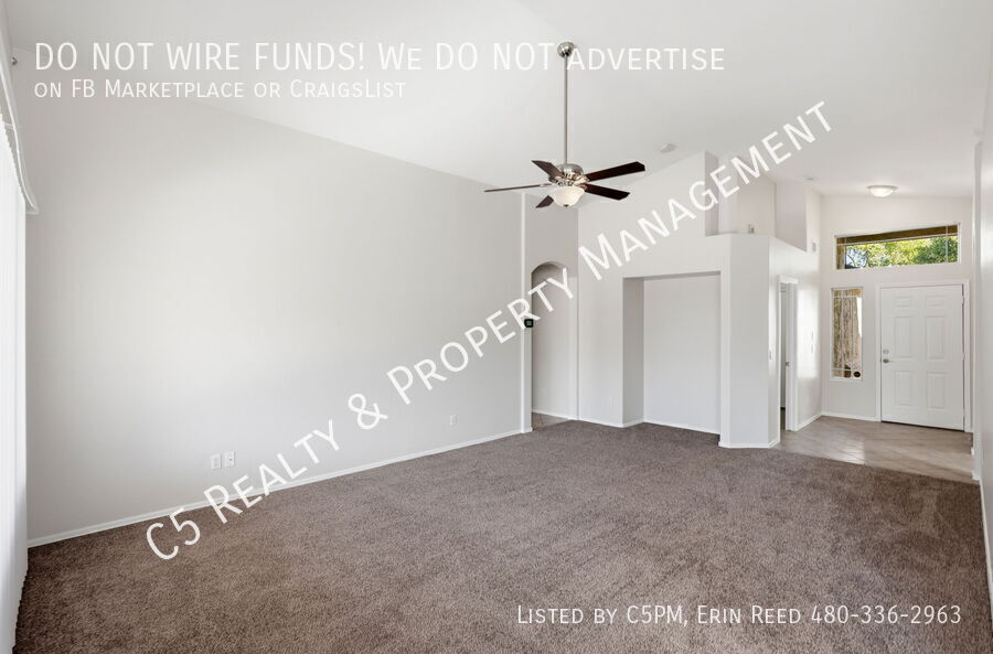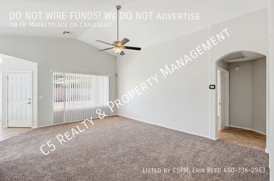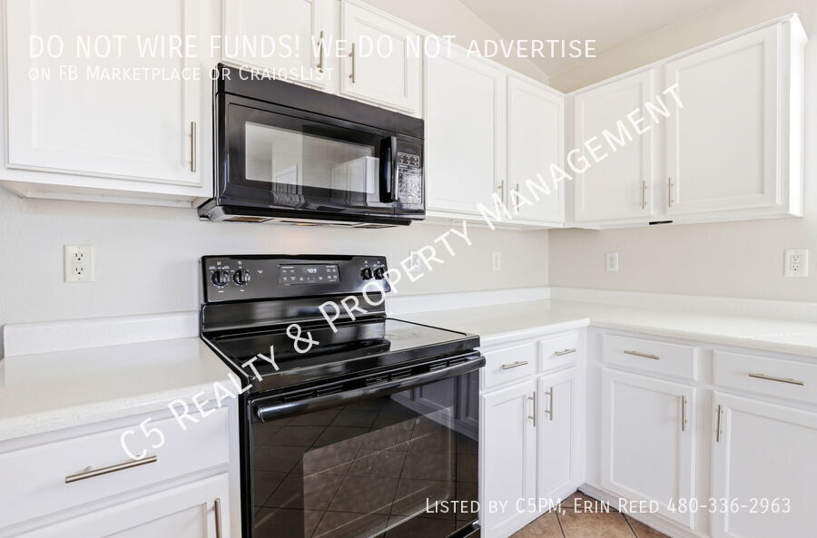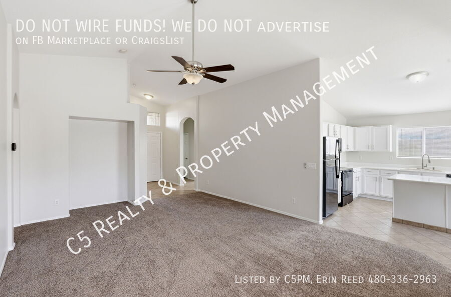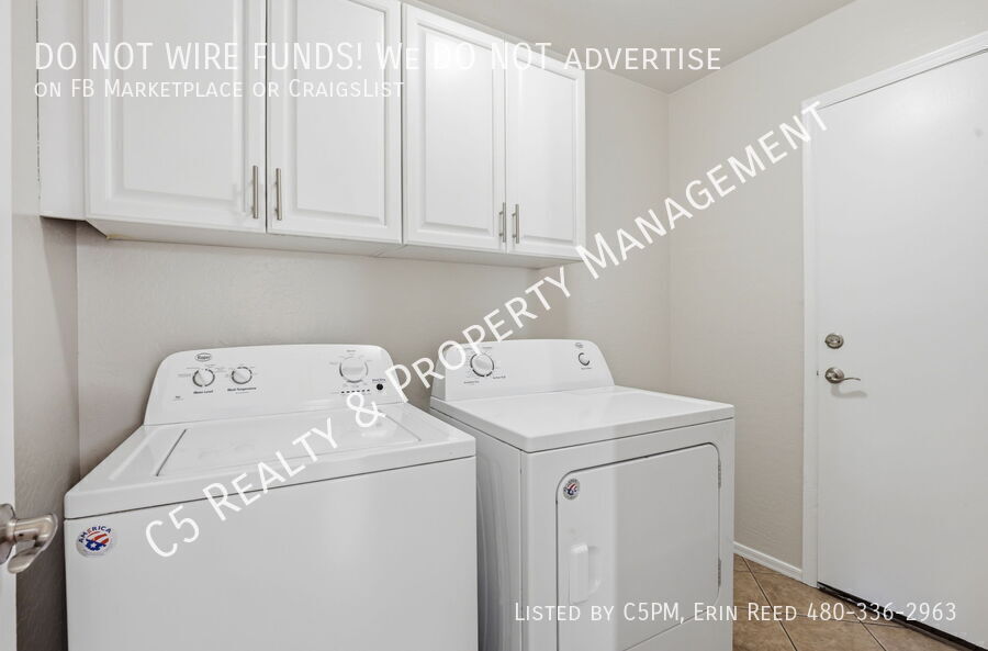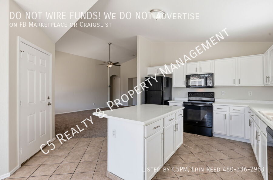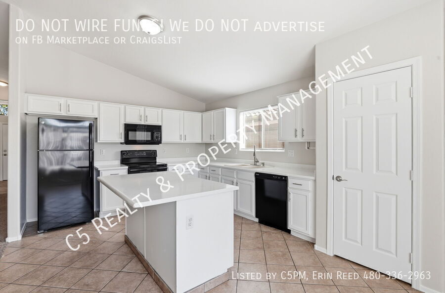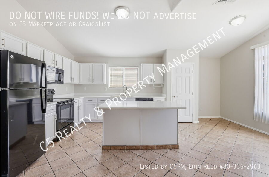 Welcome home to this beautiful 3 bedroom / 2 bathroom home with a two car garage in a lake community in Avondale. Enter this beautiful and bright single level home and discover vaulted ceilings, NEW two tone paint, and a great split floor plan. Tile is all Traffic areas and NEW Carpet in the Living & Secondary Bedrooms. The open kitchen comes complete with matching appliances including refrigerator, pantry, and kitchen island, perfect for gatherings. Washer /Dryer included. The roomy master bedroom features a private bathroom with separate shower / soaking tub, dual sink vanity, and a walk in closet with shelves. Outside you will find a covered patio, desert landscaping, and a walkway with pavers to an additional sitting area.