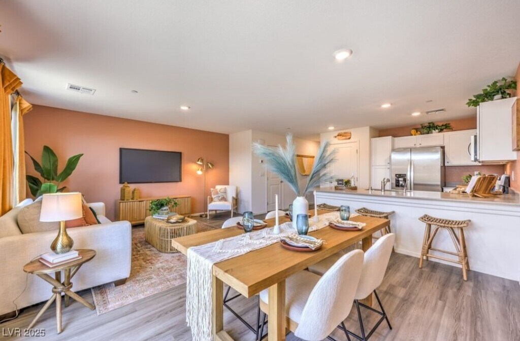 Amazing 3-bedroom, 2.5-bath townhouse, new build, in the gated Tribute Trails community in Las Vegas, offering approximately 1,344 sq. ft. of modern living space. HOA fees are included in the rent. Features: •Open-concept kitchen & great room •Stainless steel appliances, dishwasher, washer & dryer included •All-electric home (electric stove & water heater – no gas) •Remote keyless entry & video doorbell •Modern finishes throughout Community & Location: •Community pool •Skye Hills Trail, perfect for morning runs or walks, runs from Farm Road to Tropical Parkway •Close to parks: Knickerbocker, Huckleberry, Gilcrease Brothers, Skye Canyon Rental Details: Rent: $2,500/month Security Deposit: $2,000 Available: February 1, 2026 Utilities: Tenant responsible for electric, trash, and sewer Pet Policy: Not pet friendly Please submit the form on this page or contact Joe at or for more information. This property is professionally managed by a responsible landlord using Avail Landlord Software for a smooth and secure rental experience.