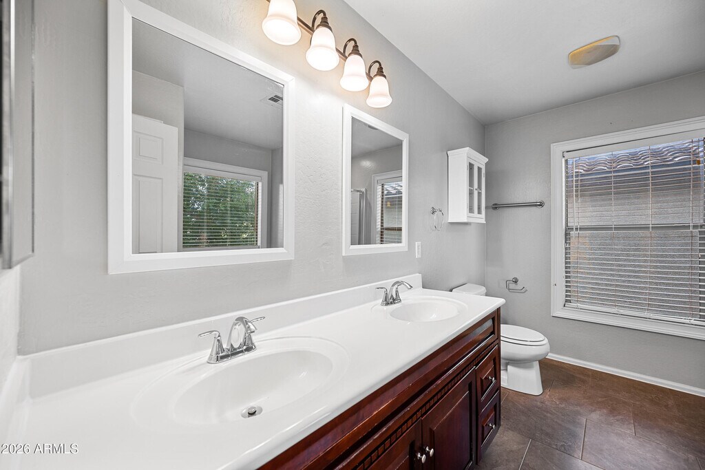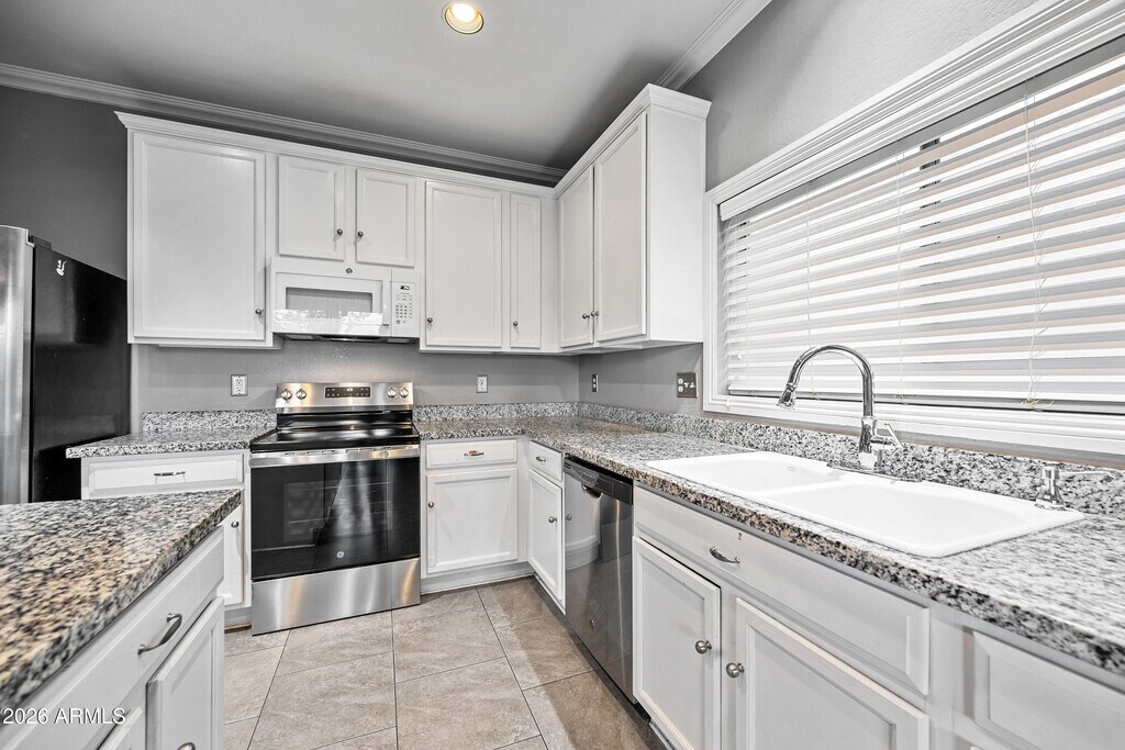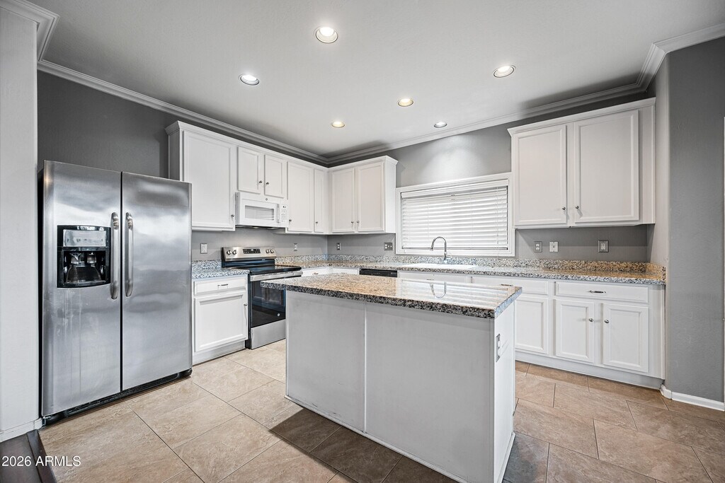 Beautiful home well updated with contemporary finishes! This home features formal living and dining,separate family room,and a loft for all family gatherings. The open kitchen boasts white cabinetry,granite countertops,island w/breakfast bar and all appliances. Sliding doors lead out to the amazing paved patio - perfect for outdoor entertaining! The master bedroom offers private bath with dual sinks,separate tub & shower & walk-in closet. Secondary bedroom also has walk-in closet. 2 car garage w/epoxy flooring,surround sound,alarm system,window sills,crown molding,walk-in closet in the loft,and recessed lighting throughout. Great location,close to Dust Devil Park & White Sox/Dodgers spring training! View it today!