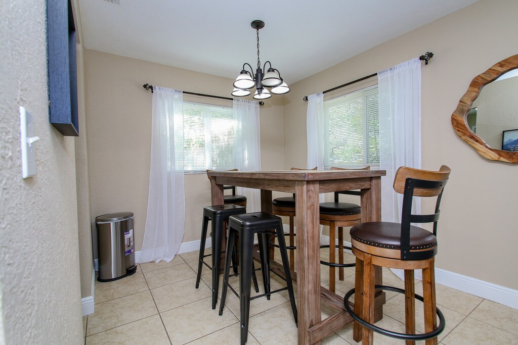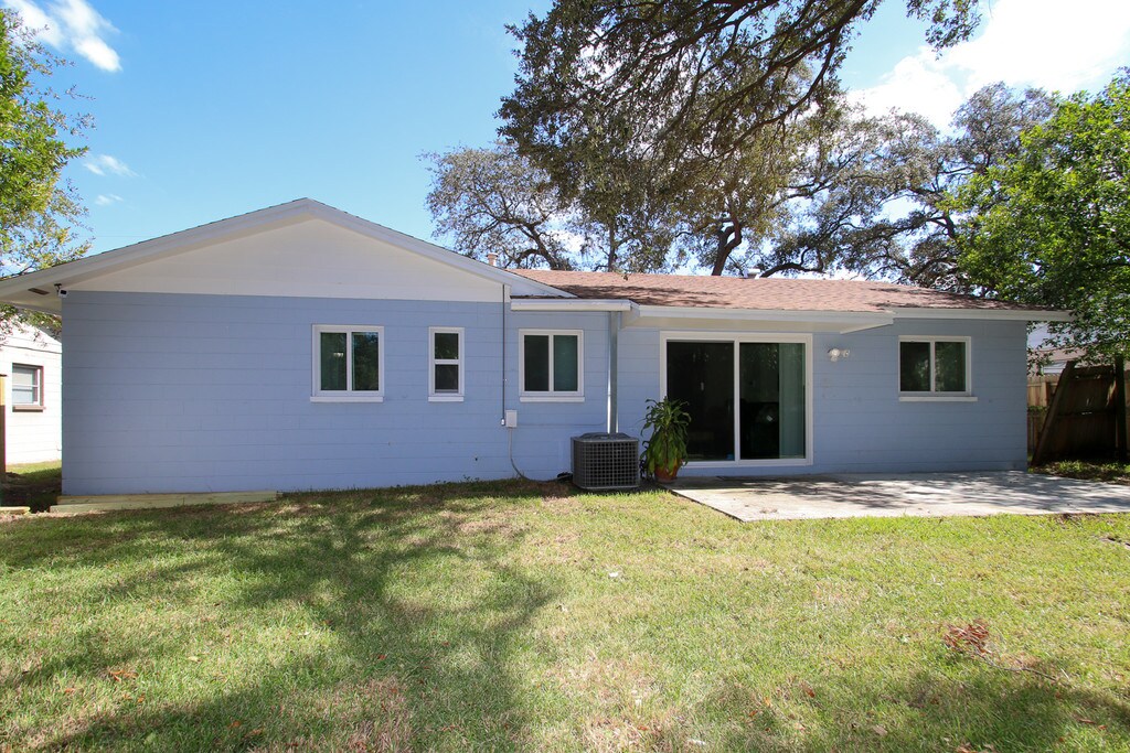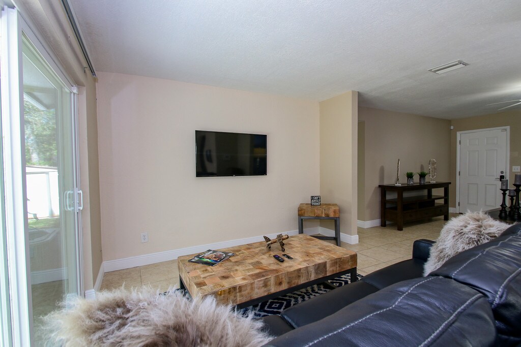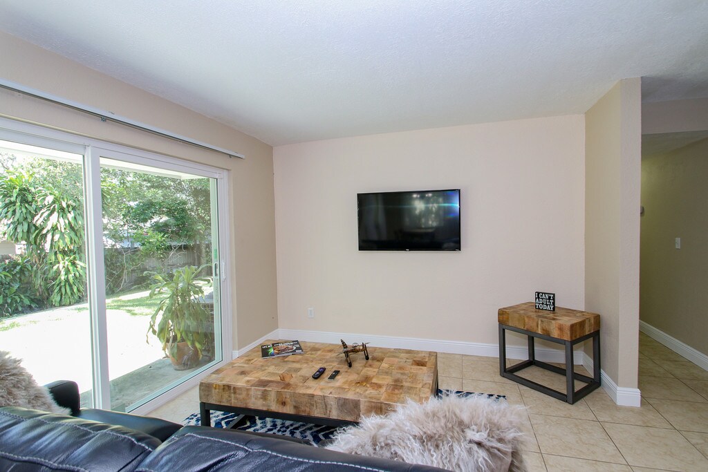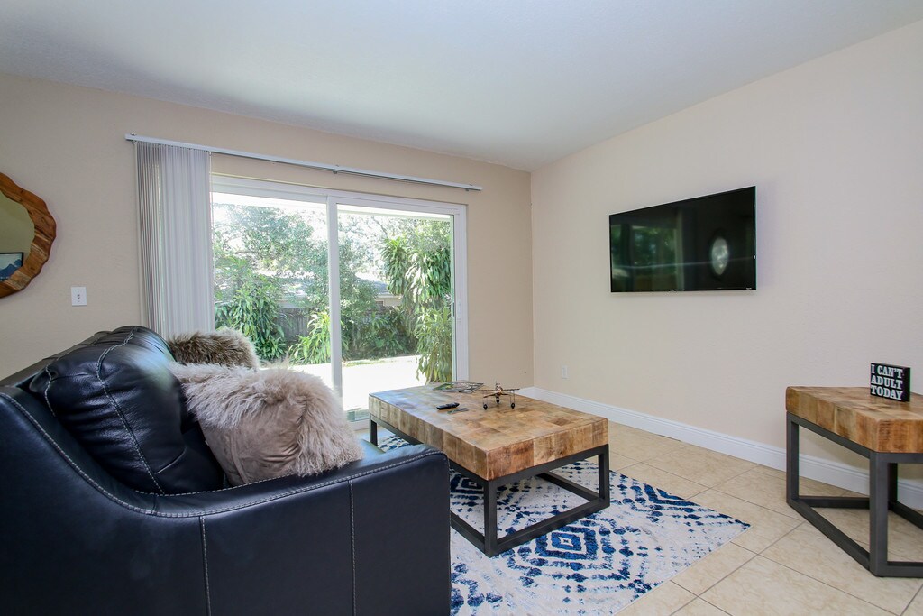 DETAILS BY ROOM The Den – A welcoming space to relax after a day at Moffitt Cancer Center or on campus at USF. Furnished with a leather sofa, dining table, 50" Smart TV, and PlayStation 4, this area is perfect for family-friendly movie nights, gaming, or extended-stay relaxation. The Kitchen – Fully equipped for long-term convenience, the kitchen includes pots, pans, dishes, silverware, and everything you need to prepare meals during your Tampa mid-term rental stay. From home-cooked dinners to quick snacks, the setup is ideal for guests balancing work, school, or medical visits. The Living Room – Comfortably furnished and versatile, this space is great for quiet reading, hosting guests, or simply unwinding after appointments or classes. It's a cozy retreat that makes this extended-stay Tampa home feel like your own. The Bedrooms – Each bedroom features a queen bed with crisp white linens, light comforters, and an iHome clock, creating a restful environment for medical travelers, corporate guests, or families. Primary Suite: Offers privacy with a full en suite bathroom and a modern stand-up shower. Bedrooms 2 & 3: Share a spacious guest bathroom conveniently located nearby. Outdoor Patio – Enjoy Tampa's sunshine in your own fenced backyard oasis. The large patio features plenty of seating, good lighting, and a charcoal grill—perfect for long evenings at this family-friendly rental near USF and Moffitt Cancer Center. (Lawn care is scheduled for Mondays or Tuesdays to keep the space fresh.) Laundry Room – Designed for extended stays, the laundry area includes a washer, dryer, and ironing board so you can travel light and still feel at home. (The linen closet is reserved for cleaning supplies and not guest accessible, but your host can provide additional items upon request.) OUR COMMITMENT TO CLEAN: Your health, safety, and comfort are our top priorities. We are dedicated to providing a clean and sanitary home for every stay. * Enhanced Cleaning Schedule – Each home is thoroughly sanitized before and after every booking, with extra attention to high-touch surfaces such as doorknobs, remotes, and light switches. * Protective Cleaning Practices – Our team follows detailed checklists and uses protective equipment to ensure consistent and safe cleaning procedures. * CDC-Approved Guidelines – We strictly follow the CDC's cleaning and disinfection protocols, using products from the EPA-registered disinfectant list. * Fresh Linens & Dishware – All bedding, towels, dishware, and service items are professionally cleaned and sanitized between guest stays. * Sanitation Supplies Provided – Complimentary soap, cleaning products, and surface sanitizers are available for you to use during your stay. * Contactless Check-In & Check-Out – For added peace of mind, we provide keyless entry and a fully contactless arrival and departure process. HOUSE RULES: * Pets – Pets are welcome with a $100 fee for one pet or $150 for multiple pets. Payment details will be provided after booking. * Photography & Filming – Commercial photography, video shoots, or publication are not permitted without the owner's written consent. * Personal Belongings – We do not provide a lost and found. Please double-check for all personal items before departure. * Late Check-Out – A $300 fee will be applied for unauthorized late check-outs. * No Smoking or Vaping – Smoking or vaping inside the home is strictly prohibited. Evidence of smoke or ashes will result in a $250 cleaning fee. * Minimum Age Requirement – Guests must be at least 25 years old to book this property. By renting this property, you are agreeing to Kong Vacation Homes' terms and conditions. Welcome to the USF Hideaway – Your Home Away from Home in Tampa Experience the comfort and convenience of the USF Hideaway, a charming 3-bedroom, 2-bathroom retreat offering 1,200 sq. ft. of cozy, well-appointed living space. Tucked away in Tampa's vibrant University area, this family- and pet-friendly home features a private fenced backyard, a fully furnished outdoor patio, and modern amenities designed to make your stay relaxing and stress-free. Whether you're visiting for business, medical appointments, or vacation, you'll love the central location—just minutes from USF, Busch Gardens, Moffitt Cancer Center, and James A. Haley Veterans' Hospital. Ideal for extended stays! What You'll Love: * Fast Wi-Fi, smart TVs, and a state-of-the-art security system * Two spacious living areas for relaxation and entertainment * Fully equipped kitchen with everything you need to cook at home * Dedicated laundry room with washer, dryer, and ironing essentials * Private outdoor patio with ample seating, great lighting, and a charcoal grill * Pet-friendly accommodations (with applicable fee)