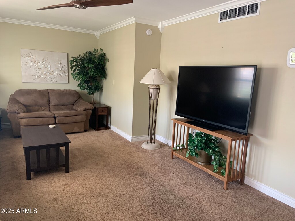 AVAILABLE 2026 SEASON! Spacious 2 bedroom comfortably furnished vacation home. Large living room with plenty of seating and 60'' TV. Formal dining room and fully stocked kitchen. Washer and dryer provided along with all the kitchen appliances to make your stay convenient. 2 bedrooms,each with queen beds,2 baths,plus a den overlooking the backyard and golf course. Covered patio with string lighting,furniture,charcoal BBQ,fruit trees and much more! Garage with extended storage area and work space. 55+ community with multiple recreation centers,pools,numerous golf courses,clubs,events,and much more! Enjoy all the amenities Sun City has to offer with optional membership fee. No pets preferred,but would consider small dog with very well qualified applicant