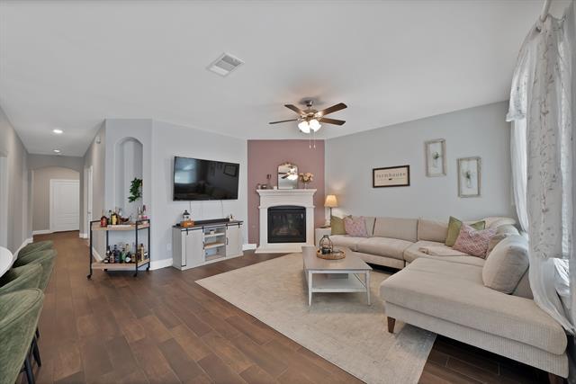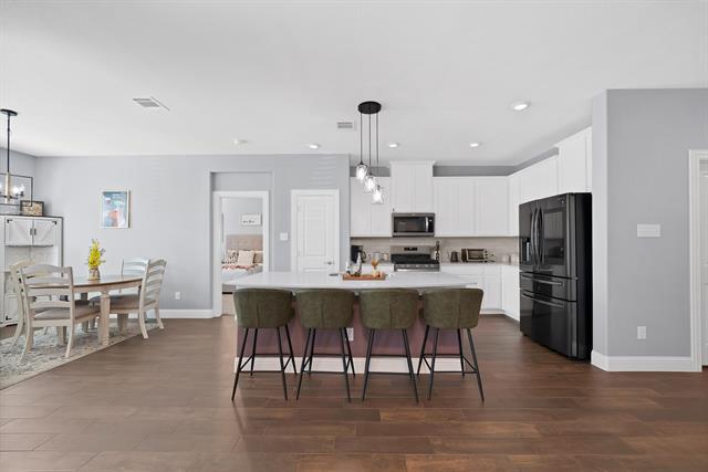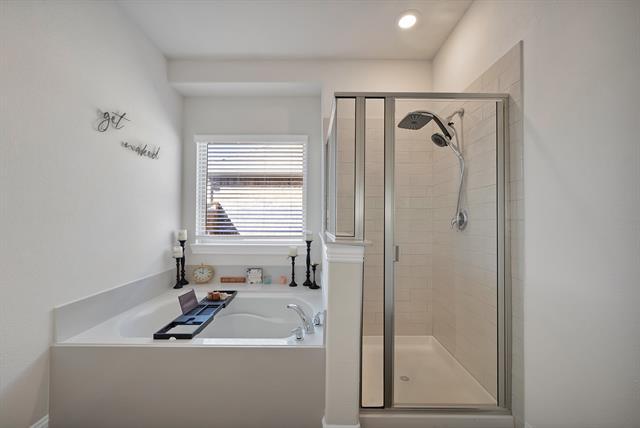 HOT TUB, TWO REFRIGERATOR's, WASHER, AND DRYER INCLUDED!! Welcome to this exceptional home in the desirable Silverado community! Upon entering the home you will appreciate the seamless flow of the open-concept layout, perfect for both everyday living and entertaining guests. The Large windows throughout the home allow abundant natural light to enhance the inviting atmosphere, while modern finishes and thoughtful details elevate every space. The kitchen, living, and dining areas work together effortlessly, creating a welcoming environment for gatherings and daily life. The primary suite is oversized including an expansive walk-in closet, dual sinks, garden tub, and large shower. Step outside into your large backyard, complete with an extended patio, fire pit, and hot tub that provides an ideal setting for relaxing evenings or memorable outdoor gatherings with friends and family. The main community center features a resort-style pool with kids splash pool, clubhouse, basketball and pickle ball courts. There are two elementary schools, two more additional pools, fire and police department in the community! Walking paths, dog parks, and playground areas provide opportunities for outdoor enjoyment! Located in a fast-growing area with easy access to nearby shopping, dining and outdoor recreation, this home offers the perfect blend of style, space and functionality in one of Aubrey’s most sought-after communities. Do not miss your chance to make this exceptional property your new home!