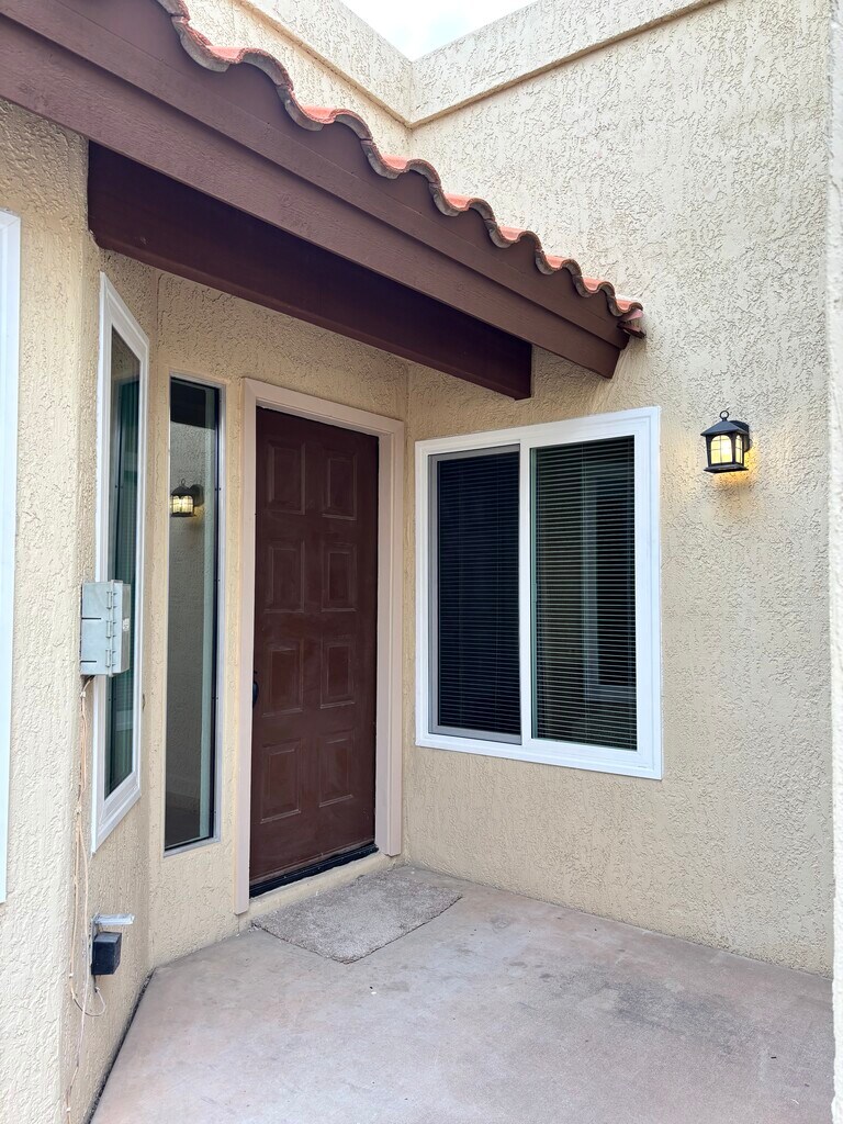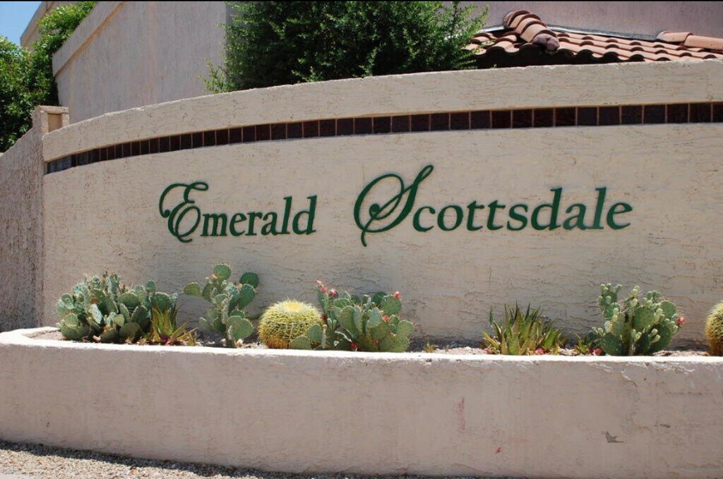 This light and bright single-level detached townhouse has 1008 sq.ft. and includes 2 bedroom, 2 bath, 2 car garage and a private gated front entry courtyard- perfect for enjoying Arizona’s sunny weather in a secure low maintenance setting. Featuring a fireplace, ceiling fans, in-unit washer and dryer, and a kitchen with all stainless steel appliances. The spacious primary bedroom features an en-suite bathroom for privacy, while the second bedroom-with double doors- offers excellent flexibility and would make an ideal home office or den. Freshly refreshed, it boasts brand NEW wood laminate floors, NEW baseboards, NEW fireplace tile, NEW door hardware, NEW bathroom tile floors, NEW hall bath vanity, NEW primary vanity countertop, NEW sinks, NEW mirrors, NEW toilets, and numerous other modern upgrades. All NEW energy efficient low-E windows and NEW sliding glass door in dining area, paired with a 1-year old HVAC system ensure cool, comfortable summers ahead. Emerald Scottsdale is an HOA managed community and amenities include a pool, spa and tennis courts. Close to top rated schools, shopping, dining, healthcare and loop 101 access! *Monthly landscape maintenance included. *Quarterly pest control service included Date Available: March 1, 2026. Fees-$2400/ month lease, $2400 security deposit Pet friendly (1 dog under 20lbs with additional fees including a $300 fee along with a $20/ month pet rent.) Must have no prior evictions. Background, credit check, proof of income and rental references required (all over 18+). Please message Maria Mulligan at to learn more!