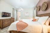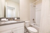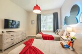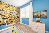 Experience luxury and fun at this 5-bedroom home in Champions Gate, a sought-after resort just moments from Disney parks. Unwind in a beautifully decorated, spacious retreat with 5 bedrooms and 5 bathrooms. Delight in the magic of themed bedrooms featuring Mickey, Minions, and Star Wars. Enjoy ultimate relaxation by the private pool. Your dream Disney getaway awaits! Welcome to this exquisitely designed 5-bedroom home, where comfort and style intertwine seamlessly. The spacious living room flows harmoniously into the integrated dining room and fully equipped kitchen, creating a central hub for relaxation and culinary adventures. Step outside to the inviting patio, featuring a private heatable pool, perfect for leisurely dips. The first floor boasts a regal king bedroom suite, offering privacy and convenience. Also on this level is the enchanting Mickey-themed bedroom, complete with both a full and twin bed and its own bathroom, adding a touch of Disney magic to your stay. Ascending to the second floor, you'll discover a family room providing additional gathering space. The opulent master king bed suite promises unparalleled rest. The Minion bedroom features a playful bunk bed with a full and two twin beds, while the Star Wars bedroom boasts a full and a twin bed, both accompanied by dedicated bathrooms. For your convenience, the home offers a laundry room with washer and dryer, a covered garage housing a small game room, and of course, free WiFi and parking. A thoughtful welcome kit includes basic bathroom and kitchen amenities, ensuring a smooth start to your vacation. Heating the pool is a paid service and there is also a fee charged to use the barbecue grill. Champions Gate Resort is a resort-style community that offers every imaginable amenity for a blissful stay. It features an impressive clubhouse with a variety of courts and outdoor activities like tennis, beach volleyball, and a golf course, while its restaurant and fitness center will help you stay refreshed and fit. Its swimming pool complex is perfect for a splashy day, with slides, a lazy river, and a kids splash pool. Plus, the resort is just 20 minutes away from Disney Parks, ensuring plenty of opportunities for fun and adventure. Shopping, dining, and entertainment are also within reach, with stores, restaurants, and supermarkets nearby. It's the perfect place for a family getaway; come and experience all the perks of Champions Gate Resort! Quiet hours are between 22:00 and 8:00. Replenishing bathroom and kitchen amenities is the guest's responsibility.