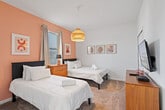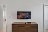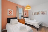 Explore this charming 3-bedroom condo, meticulously crafted for comfort and elegance. Relax in the spacious living room that seamlessly connects to a fully equipped kitchen and dining area. With accommodation for up to 9 guests, enjoy two beautifully decorated bedrooms and a chic king master suite. Step out onto the balcony and take in the breathtaking views. Located in Champions Gate, right beside the incredible club with a water park and mini-golf, offering unparalleled access to resort amenities. Experience the charm of this spacious and sophisticated 3-bedroom, 2-bathroom condo. The generous living room seamlessly integrates with a fully equipped kitchen and dining area, accommodating up to 9 guests. Retreat to the stylish King bedroom suite, or enjoy the Star Wars-themed room with two double beds, sharing a bathroom with the beautifully decorated third bedroom featuring a single and a double bed. Take advantage of scenic views from the balcony. This condo includes a laundry room, complimentary Wi-Fi, covered garage, and a considerate welcome kit with basic amenities for your convenience upon arrival. Guests are responsible for replenishing bathroom and kitchen amenities based on their usage. Champions Gate Resort is a resort-style community that offers every imaginable amenity for a blissful stay. It features an impressive clubhouse with a variety of courts and outdoor activities like tennis, beach volleyball, and a golf course, while its restaurant and fitness center will help you stay refreshed and fit. Its swimming pool complex is perfect for a splashy day, with slides, a lazy river, and a kids splash pool. Plus, the resort is just 20 minutes away from Disney Parks, ensuring plenty of opportunities for fun and adventure. Shopping, dining, and entertainment are also within reach, with stores, restaurants, and supermarkets nearby. It's the perfect place for a family getaway; come and experience all the perks of Champions Gate Resort! Quiet hours are between 22:00 and 8:00.