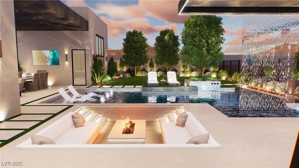 All images and visuals associated with this listing are artistic renderings and are virtually staged. This brand-new home located within Toll Brothers at Ascension is a stunning single-story masterpiece in Summerlin's exclusive Peaks village, offering the perfect blend of modern luxury and functional design with 4 bedrooms, 4.5 bathrooms, and a 3-car garage within approximately 3,745 sq. ft. This home is designed for the ultimate indoor/outdoor lifestyle, featuring dramatic ceilings and expansive slider doors that open to a resort-style backyard, perfectly suited with an exquisite in-ground pool, spa, waterfall, and a sunken firepit, providing an unmatched sanctuary for entertaining and relaxation. Furthermore, the residents will enjoy the guard-gated community's upcoming exclusive amenities, including a clubhouse, pools, pickleball courts, and a golf simulator, establishing Ascension as the pinnacle of refined living in Las Vegas.