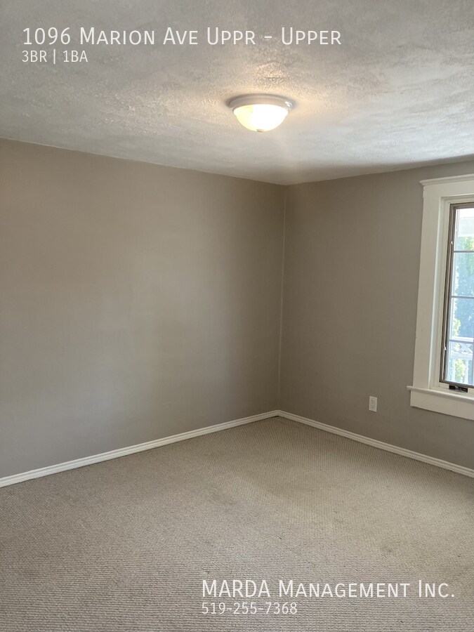 Welcome to 1096 Marion Upper, a spacious and updated 3 bedroom, 1 bathroom apartment located in the desirable Walkerville area. This bright unit offers generous living space and a practical layout perfect for families or professionals. The home features a large kitchen with ample counter space, a double sink, and ceramic tile flooring. The formal dining and living areas offer laminate flooring and lead out to a large balcony, providing a great space to relax. The updated bathroom includes a tub/shower combo and a large vanity. All three bedrooms are generously sized and include closets. The unit also features a large laundry room with a wash sink and additional storage space. Enjoy plenty of natural light from the many windows throughout the apartment. The property also includes a fully fenced backyard with attractive landscaping. Tenant is responsible for hydro. One-year minimum lease. First and last months rent and a credit check are required. Professionally managed by MARDA Management, offering 24/7 maintenance support with a live agent and easy, convenient rent payment options. Call MARDA MANAGEMENT today at 519-255-RENT or email to schedule your viewing. Fenced Back Yard Freshly Painted Laminate Flooring No Smoking Allowed Pet Friendly Shared Back Yard Washer/Dryer Hookups Available