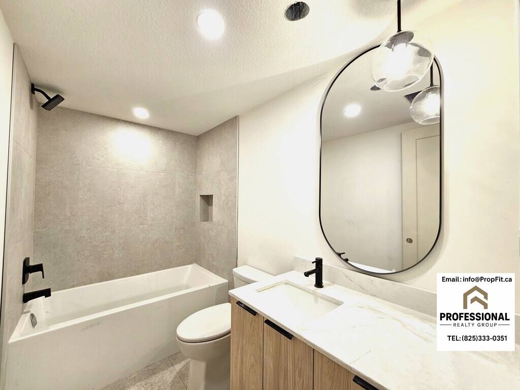 Stylish 1-Bedroom Basement Suite | Brand New | Great Location Basement - 10961 74 Ave NW Edmonton AB T6G 0E5 • Rent: $1150 + $250 Flat Rate Utilities (Power, Heat, Water, Garbage) • No Pets • Street Parking • Credit, Reference and employment Check will be required with applications. Note: Photos are from a similar unit and may differ slightly from the actual unit. Features: 1) One generously sized bedrooms with large above-grade windows allow sunlight to brighten the rooms, while spacious closets provide ample storage for clothing and personal items. 2) One full bathroom finished with modern tile surrounds, full-size tubs, and rainfall showerheads. 3) A thoughtfully designed open-concept kitchen with brand-new stainless steel appliances, including fridge, stove, and range hood. 4) Bright and inviting main living space. The open floor plan seamlessly connects the kitchen, dining, and living areas, making the space feel larger and versatile for various furniture arrangements. 5) Private in-suite washer and dryer included, eliminating the inconvenience of shared laundry facilities. 6) A fully private and secure entrance ensures independence and easy access to your suite. 7) Bright, open living area with a seamless layout that connects kitchen, dining, and lounge spaces — versatile for any setup, from cozy to modern. 8) This brand-new basement suite offers a convenient location close to the University of Alberta, Whyte Avenue, and downtown Edmonton. Offered by PropFit Property Management - a professional property management group licensed under the Professional Realty Group. *Advertised price reflects the discount rate for a tenant paying on or before the 1st of the month, subject to lease rules and regulations. Any overages beyond the flat-rate utilities budget will be shared among tenants.