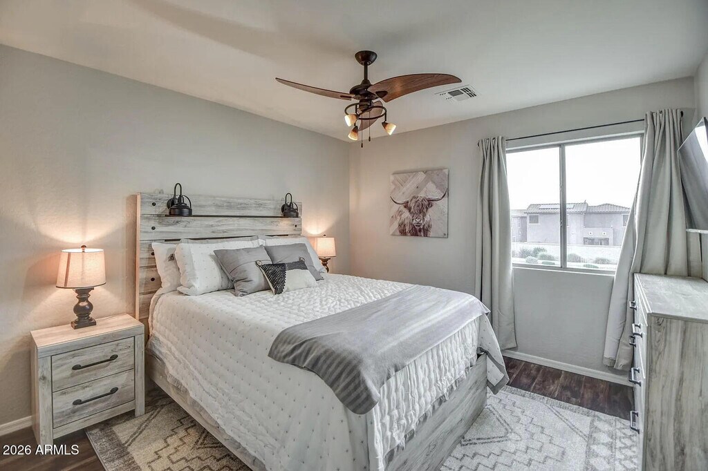 Spacious 3BR home with loft in West Phoenix,perfect for families and groups. Enjoy a heated pool,smart home features,fast WiFi,and a fully equipped kitchen. The home includes 3 queen beds and bunk beds in the loft,plus a 2-car garage and driveway parking. Located near Camelback Ranch,dining,and shopping. Comfortable,convenient,and ideal for relaxing or exploring the city.