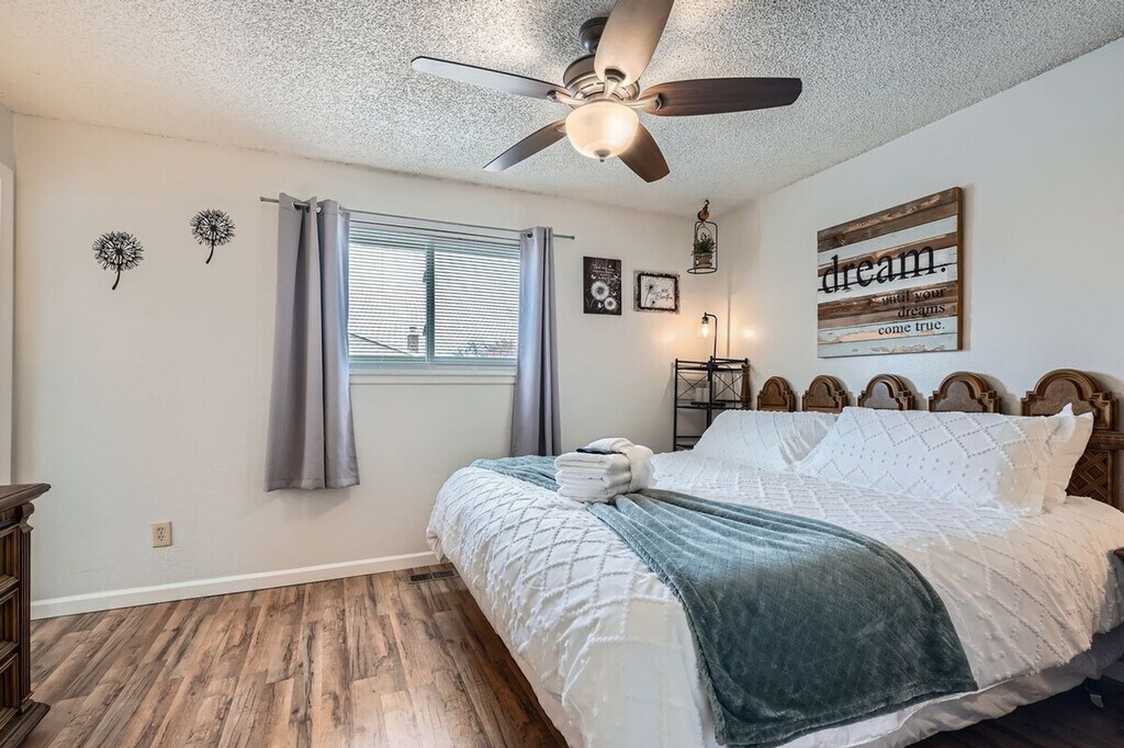 Feel at home in this bright and spacious 3-bedroom, 2-bath home in Westminster, the ideal base for exploring everything the Front Range offers. This home is designed for comfort and connection. Upstairs, you’ll find three restful bedrooms, including a spacious primary suite with a king bed and private ensuite, plus two cozy guest rooms each furnished with a queen bed. The main level combines style and warmth with an open layout that includes a fully equipped kitchen, comfortable living area, and dining space. Downstairs, the garden-level den doubles as a peaceful retreat or a productive workspace. Step outside to your own private backyard oasis with a hot tub, fire pit, and outdoor dining area in the fenced-in yard. The newly added front deck also offers a cozy spot for morning coffee or stargazing. Pets are welcome to join your stay for an additional charge of $200 per stay. Traveling with a baby or toddler? A trusted partner offers exclusive discounts on gear like cribs, strollers, car seats, and more—all delivered directly to your rental. Driveway parking is available. This home’s centrally located Westminster location makes it easy to experience the best of the Front Range. Downtown Denver and Boulder are both about 30 minutes away, while mountain destinations like Eldora or Winter Park can be reached in about an hour. Locally, you’ll find parks, trails, and neighborhood favorites like Standley Lake, the Butterfly Pavilion, and a great mix of breweries and restaurants just minutes away. The home is located in a residential area– respect for neighbors is essential, and parties are prohibited, and violations may result in fines. Smoking indoors is strictly forbidden and will result in a minimum fine of $500. Guests are welcome to smoke outside. There are exterior security cameras that monitor the driveway and entrances for safety but don’t record interior spaces or private areas. The garden-level den includes a dedicated workspace and cozy lounge. Fast Wi-Fi is available. [SI]