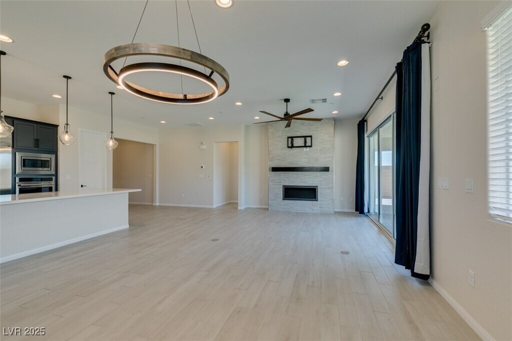 BREATHTAKING, IMMACULATE, STUNNING. THIS IS ONE OF THE MOST UPSCALE AND THOUGHTFULLY DESIGNED HOME YOU WILL HAVE THE OPPORTUNITY TO LEASE IN THE LAS VEGAS VALLEY. DESIGNER CHEF'S KITCHEN WITH CUSTOM NAVY BLUE CABINETS, PENDANT LIGHTS, QUARTZ COUNTERS, UPGRADED RANGE WITH OVEN, WALL OVEN WITH SEPARATE MICROWAVE, WALK-IN PANTRY, AND HIGH CEILINGS. THE GREAT ROOM IS LARGE AND OPEN WITH ELECTRIC FIREPLACE, TV MOUNT, AND LARGE STACKING SLIDING DOOR. HOME FEATURES GREAT OFFICE/DEN" WITH DOUBLE DOORS WITH GLASS, LARGE PRIMARY BEDROOM WITH TV MOUNT, BEAUTIFUL SPA-LIKE PRIMARY BATHROOM WITH UPGRADED SHOWER ENCLOSURE, CHEVRON TILE PATTERN, AND DOUBLE SINKS. HOME FEATURES A BEAUTIFUL LOW-MAINTENANCE BACKYARD. LARGE COVERED PATIO. DON'T MISS THIS INCREDIBLE, BEAUTIFUL HOME. *HOME FEATURES WHOLE-HOME FIRE SUPPRESSION WHICH MAY REDUCE RENTERS INSURNACE PREMIUM."
