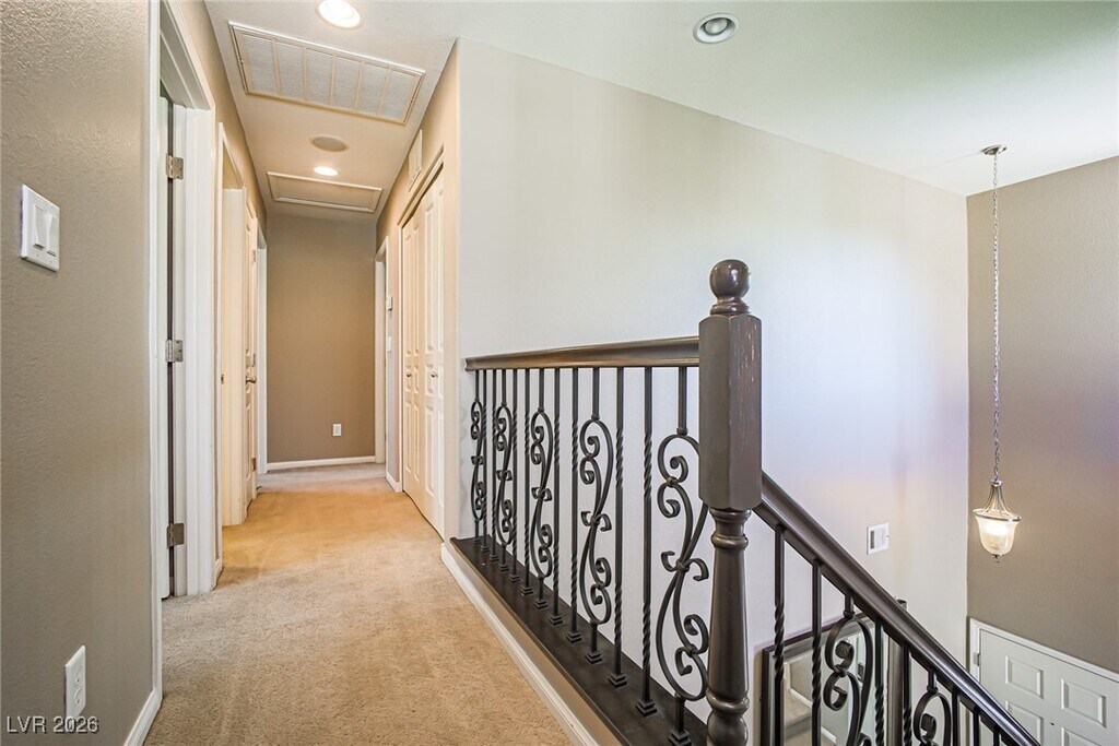 Gorgeous formal model home, 3 BRs & 2.5 Baths home located in the beautiful master plan of Southern Highlands, easy access to I-15 hwy & right next to Elementary school. Open floor plan, with tons of upgrades. Gourmet kitchen has upgraded cabinets & granite countertops. All bedrooms upstairs. Laminate flooring downstairs, vinyl plank in bathrooms & carpet upstairs. Covered patio in backyard. Hurry up before it's gone!! The home is tenant occupied, 24 hours notice required for showing appointments. Current tenant will move out by Feb 8, 2026.