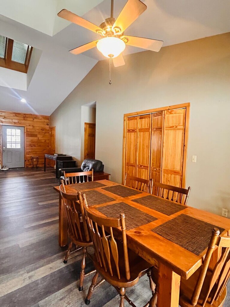 Charming Log Cabin Rental – 3 Bedroom / 2 Bath | Carthage School District Experience peaceful living in this beautiful 3-bedroom, 2-bath log cabin located in the Carthage School District. The home features an open-concept living area with soaring cathedral ceilings, creating a warm and inviting atmosphere. Sliding glass doors off the dining area and the primary bedroom lead to a covered back porch, perfect for relaxing and enjoying the private, secluded setting. Additional highlights include an attached two-stall garage, propane heat, well water, and a setting that is tucked back from the road for added privacy. Conveniently located less than 10 miles from Fort Drum’s Gas Alley Gate, this home offers the perfect balance of quiet country living with an easy commute. A rare rental opportunity offering comfort, space, and tranquility in a highly desirable location.