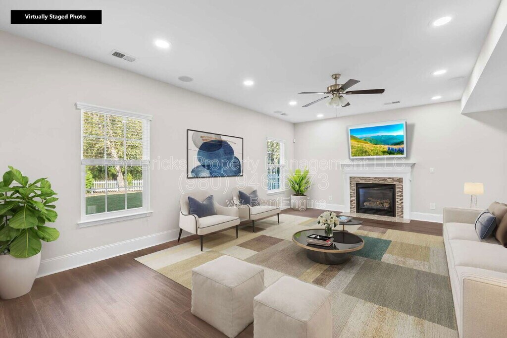 This Beautifully Maintained and freshly painted 2-story single-family home in The Farm at Riverpointe community is Available Now. Offering 2,915 sq. ft. of modern living space, it features 4 bedrooms and 3 bathrooms. The home includes a welcoming front porch, a fenced backyard with an extended patio, and a front-entry 2-car garage. The main level offers a dedicated office with glass French doors, a cozy living room with a fireplace, and a stylish kitchen equipped with granite countertops, stainless steel appliances, a tile backsplash, white cabinetry, a gas range with hood, a large island, and a pantry. A breakfast nook, a formal dining room, and a full bathroom complete the first floor. Upstairs, you’ll find a spacious loft, a primary suite with an en-suite bathroom, three additional bedrooms, two full bathrooms, and in-unit laundry. Residents of The Farm at Riverpointe enjoy access to exceptional community amenities, including a clubhouse, dog park, game court, outdoor pool, playground, sport court, and tennis courts. Conveniently located just 15 minutes from Birkdale Village, close to Renaissance Square for daily needs, and only 3 miles from Bradford Park, this home offers comfort, convenience, and an ideal lifestyle in a vibrant community. Lawn maintenance, Internet, Sewage, Water, Gas and electricity are the tenant's responsibility. HOA fees are covered by the owner, and refrigerator, washer, and dryer are included at no extra cost. A maximum of two pets are allowed (dogs only). Non-aggressive breeds over two years old may be considered on a case-by-case basis with the owner’s approval. Pet rent is $25 per month for each pet. All applicants 18+ must pass credit and background checks, provide proof of funds, and pay a non-refundable application fee. Minimum 1-year lease required; no subleasing. Security deposit: 1 month for credit above 650, 2 months for credit above 600. By submitting your information on this page you consent to being contacted by the Property Manager and RentEngine via SMS, phone, or email.
